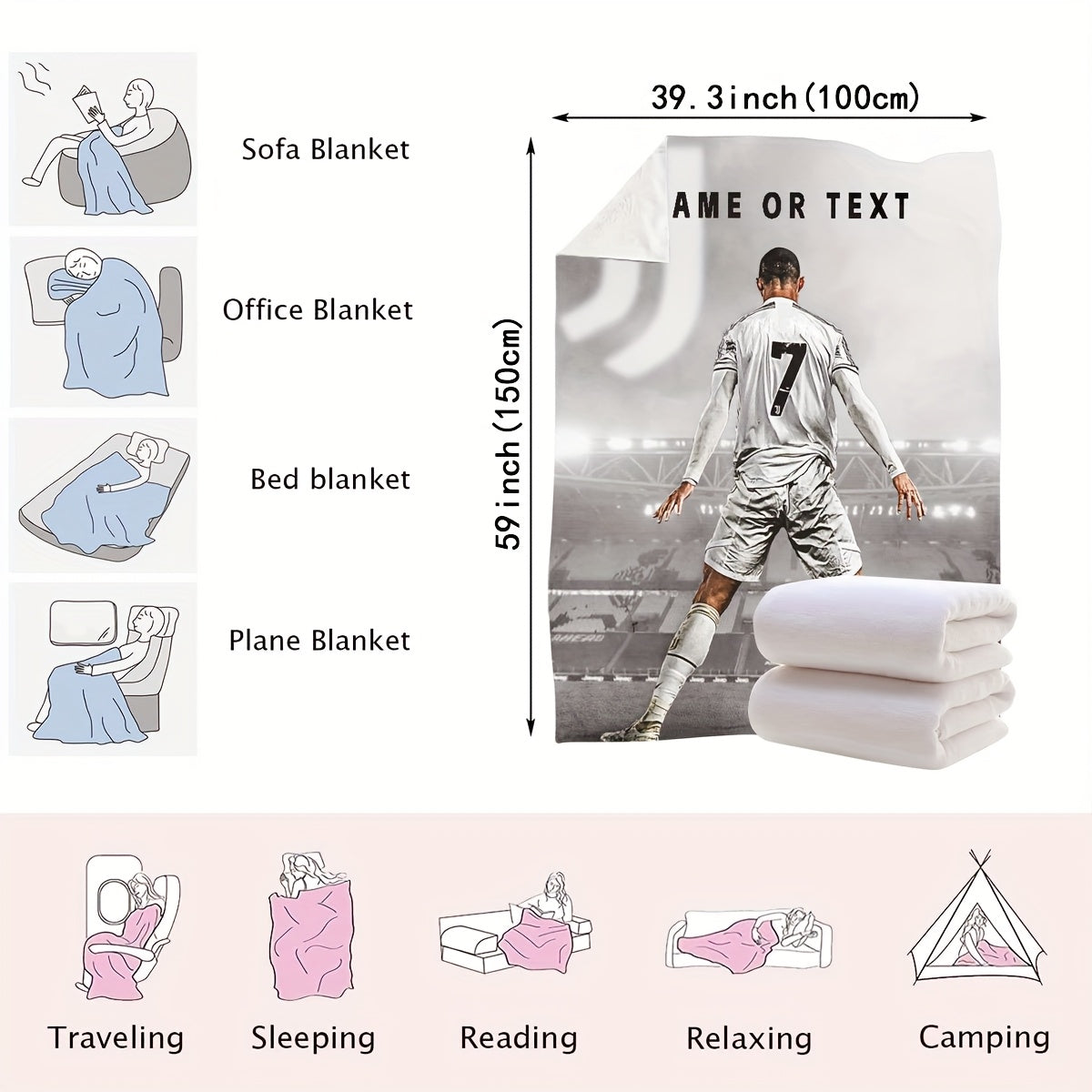 Personalized Football Player Print Flannel Blanket for Bed Sofa Camping Travel