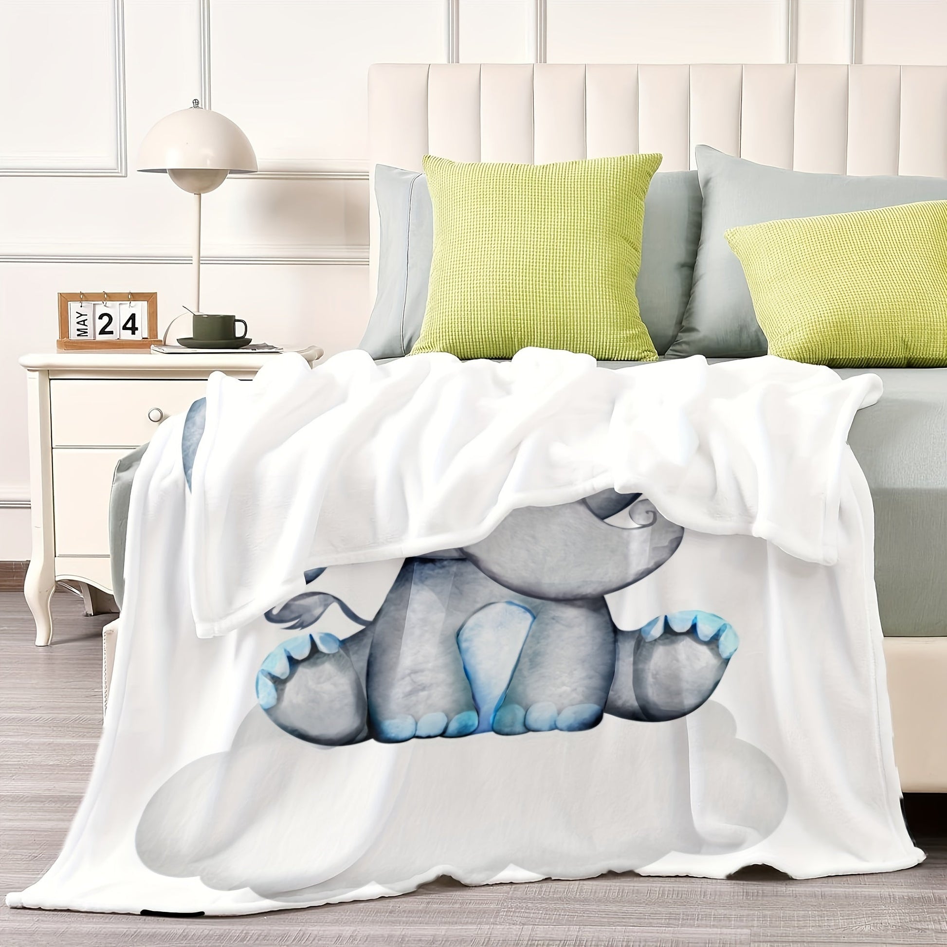 Customizable Elephant Design Flannel Blanket for Home Travel Office Soft Cozy