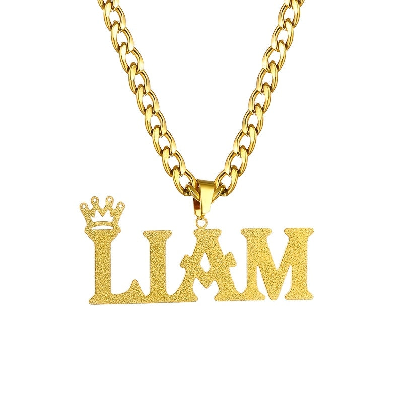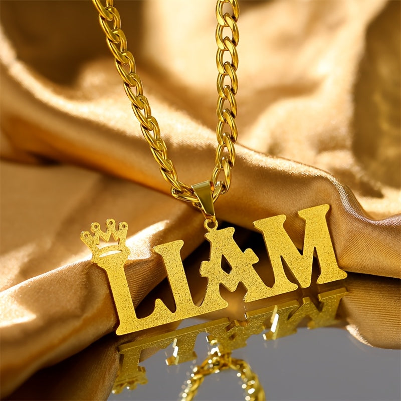 Gold Plated Name Necklace with Crown Pendant and Cuban Chain for Women