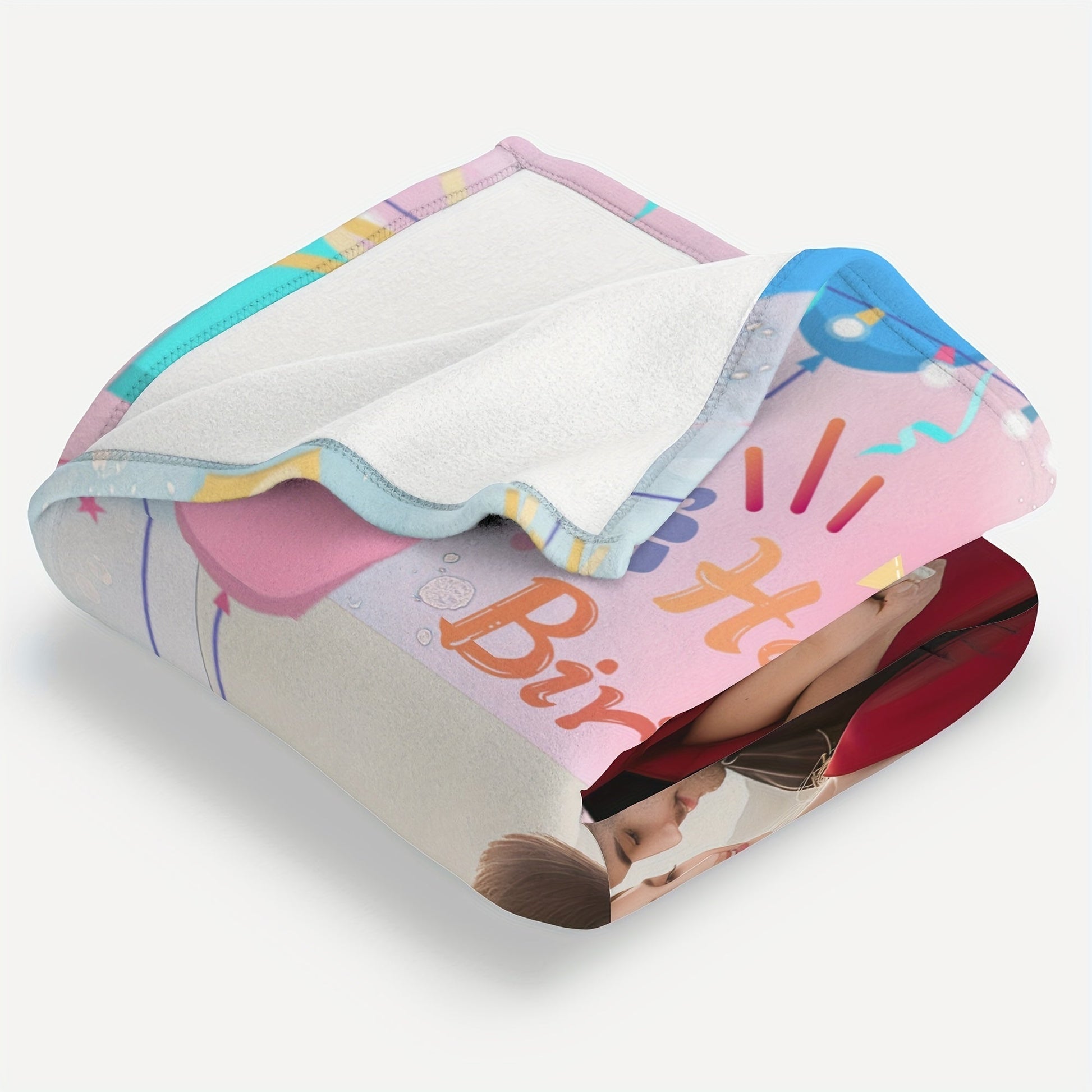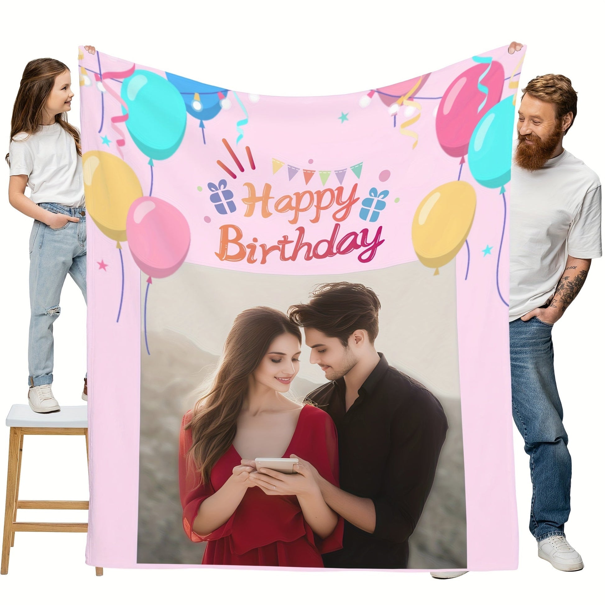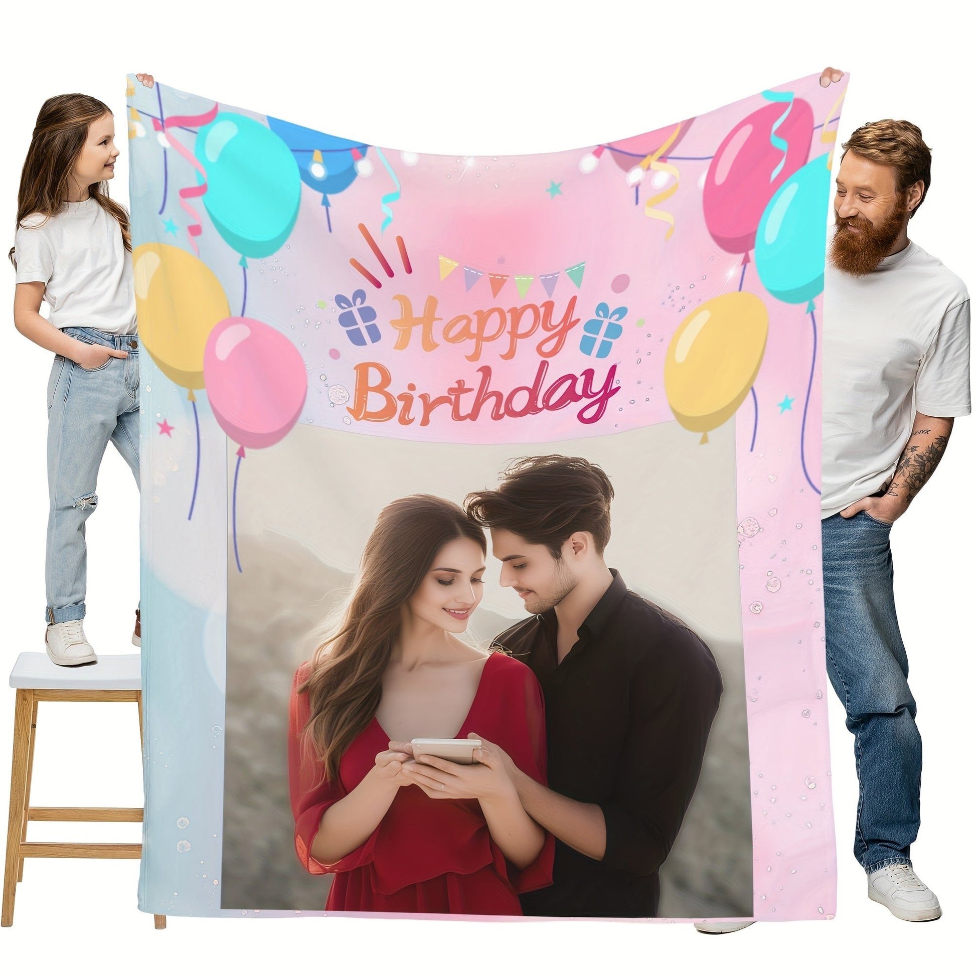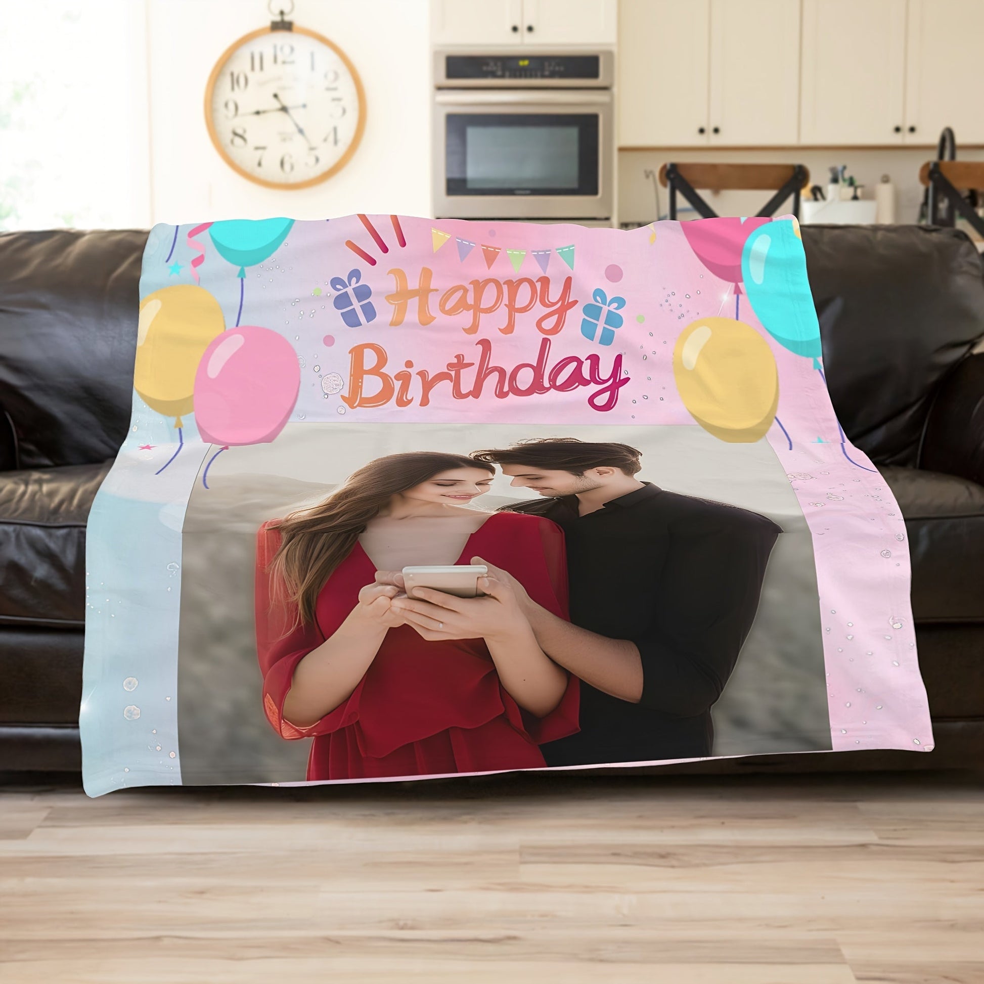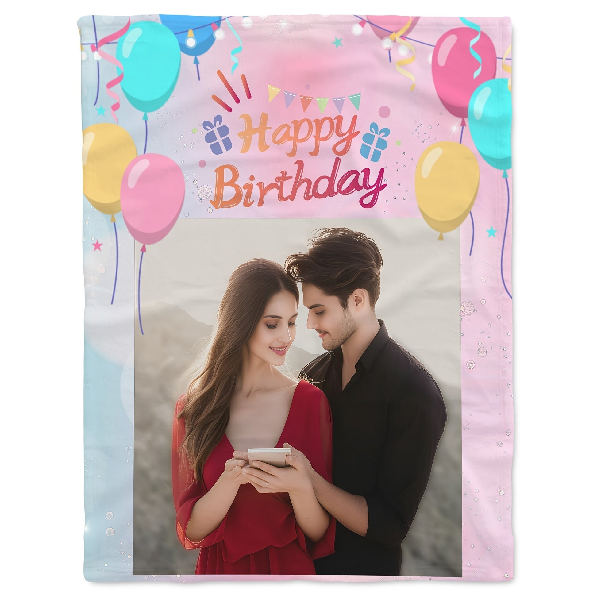 Personalized Photo Blanket with Balloons and Happy Birthday Message for Kids