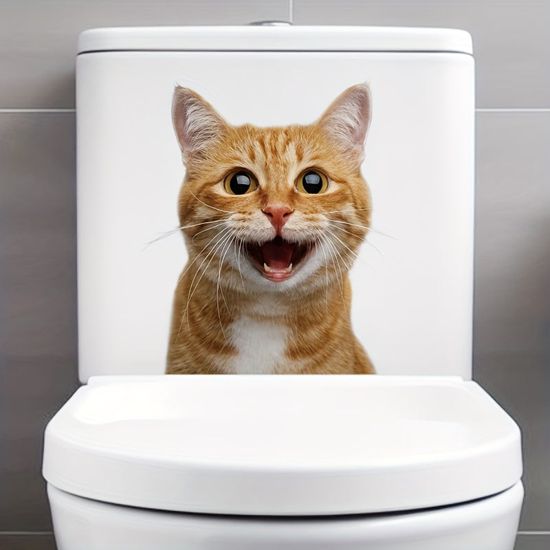Cute Cat Window Sticker 8Mil PVC Self-Adhesive Decor for Glass Fridge Bathroom