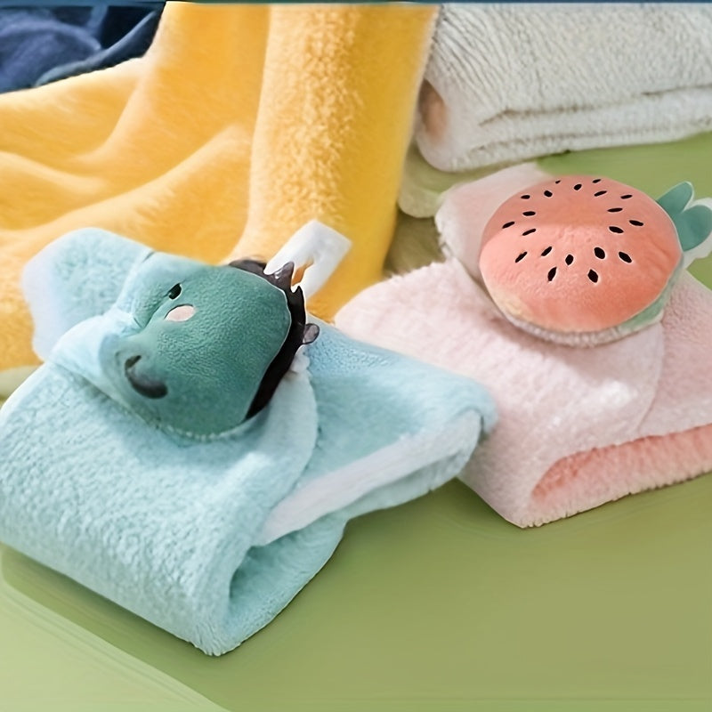 Dinosaur Hanging Hand Towel Soft Coral Fleece Absorbent Kitchen Bathroom Use