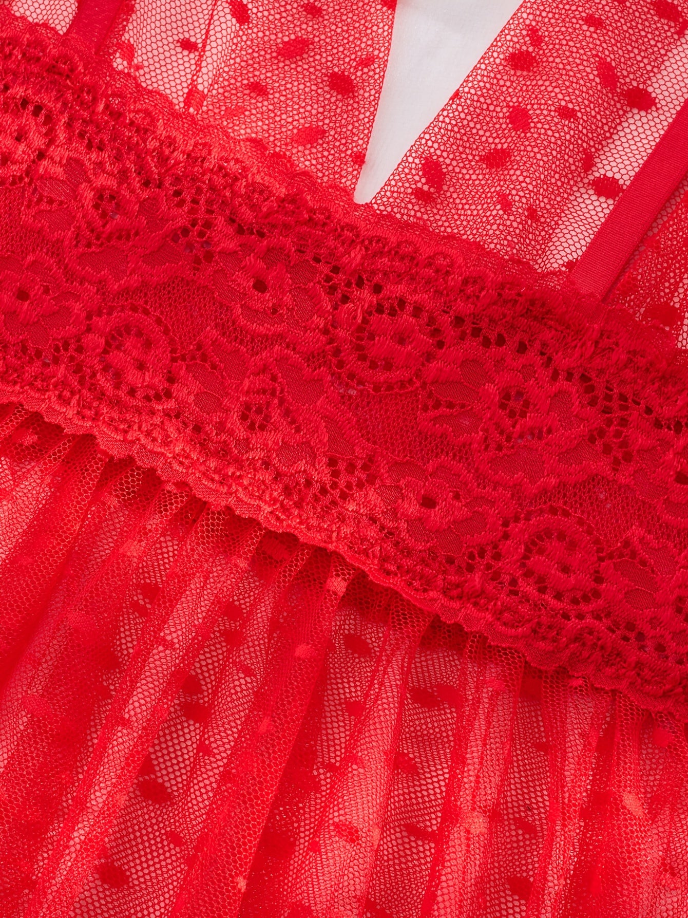 Velvet Lace Skirt Set with Bow Strap and Thong for Women