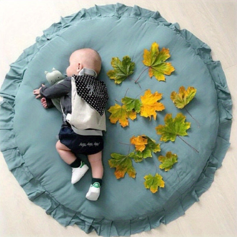 Kids Play Mat with Lace Edging, Crawling Blanket, Stroller Cover, Nursery Decor in Light Gray White Pink