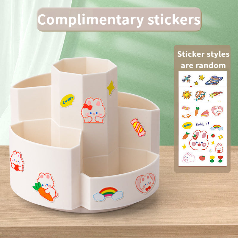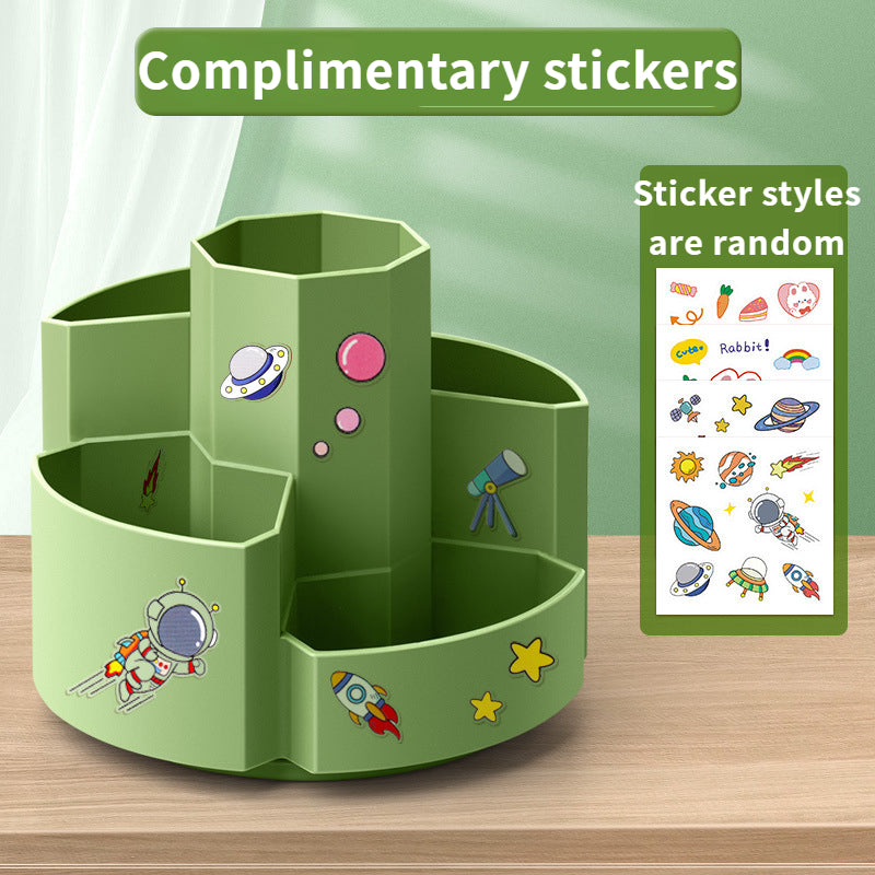 Desk Organizer with 5 Rotating Pen Slots, Office and School Supplies Storage
