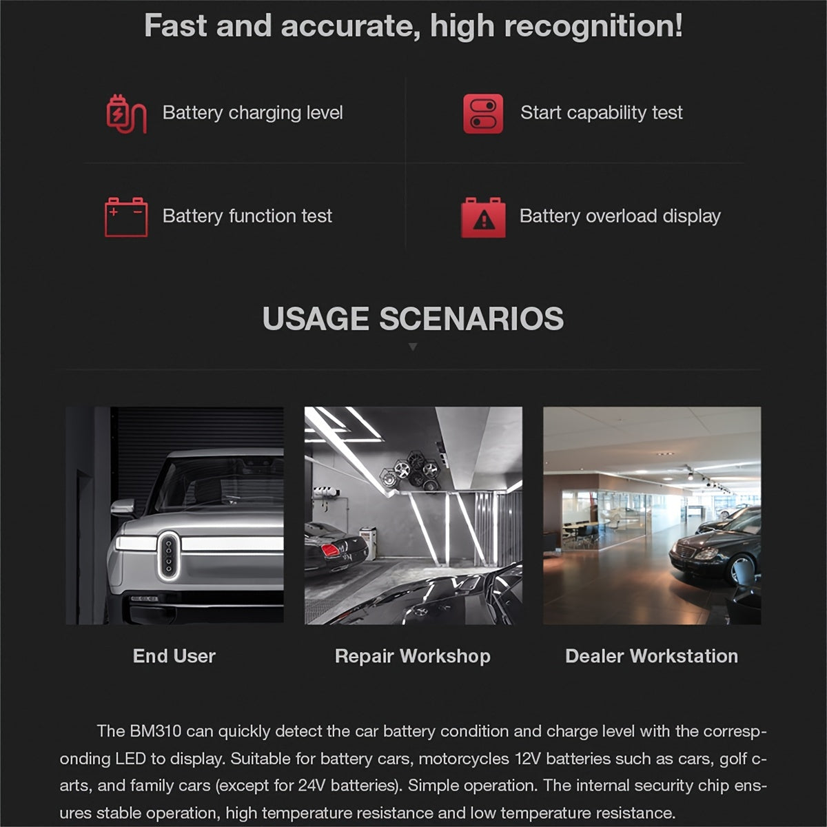 Digital 12V Car Battery Tester Alternator Tester with LED Display for Cars and Motorcycles