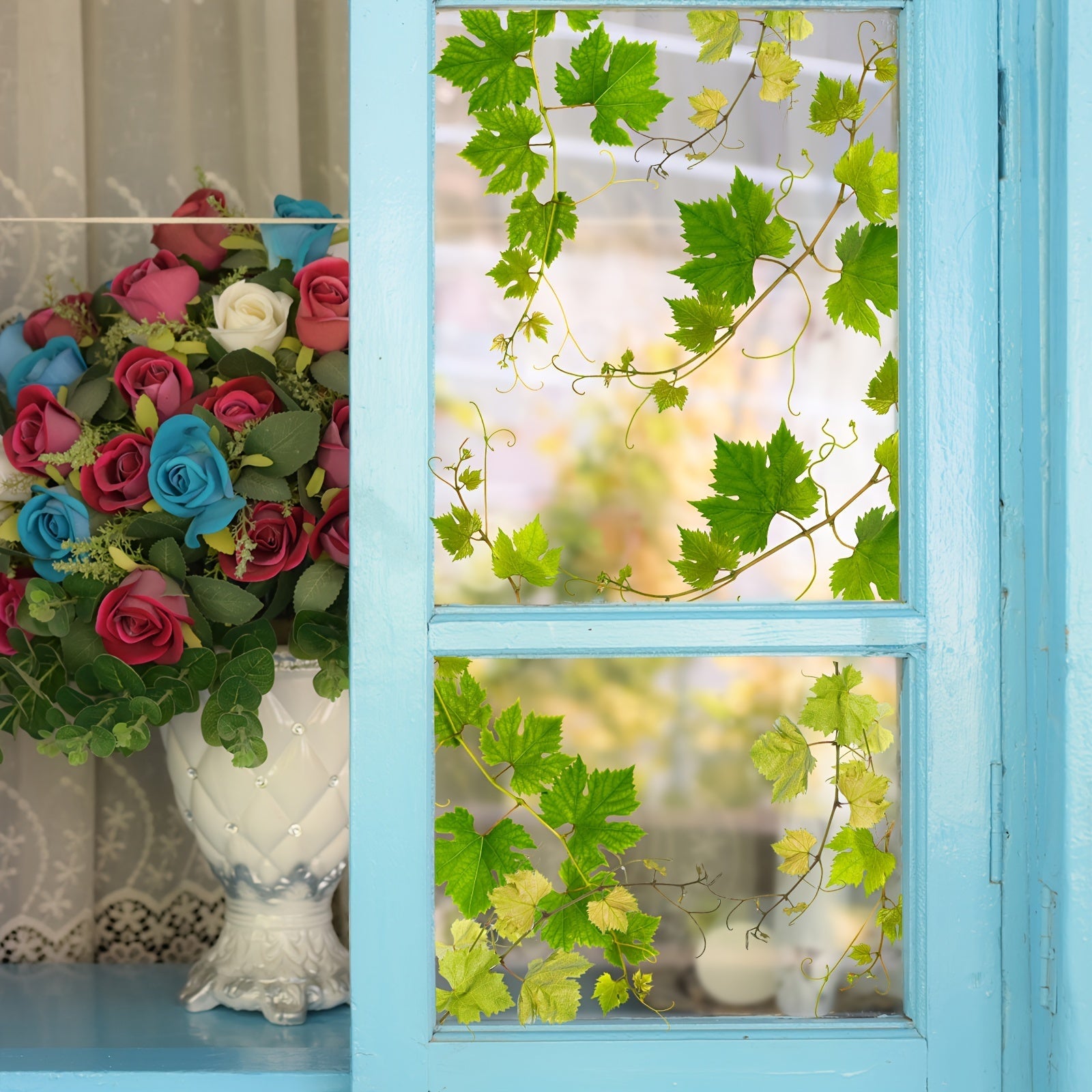 Double-Sided Silk Wall Sticker Reusable Static Cling Window Decor Maple Leaf Vine Contemporary Style