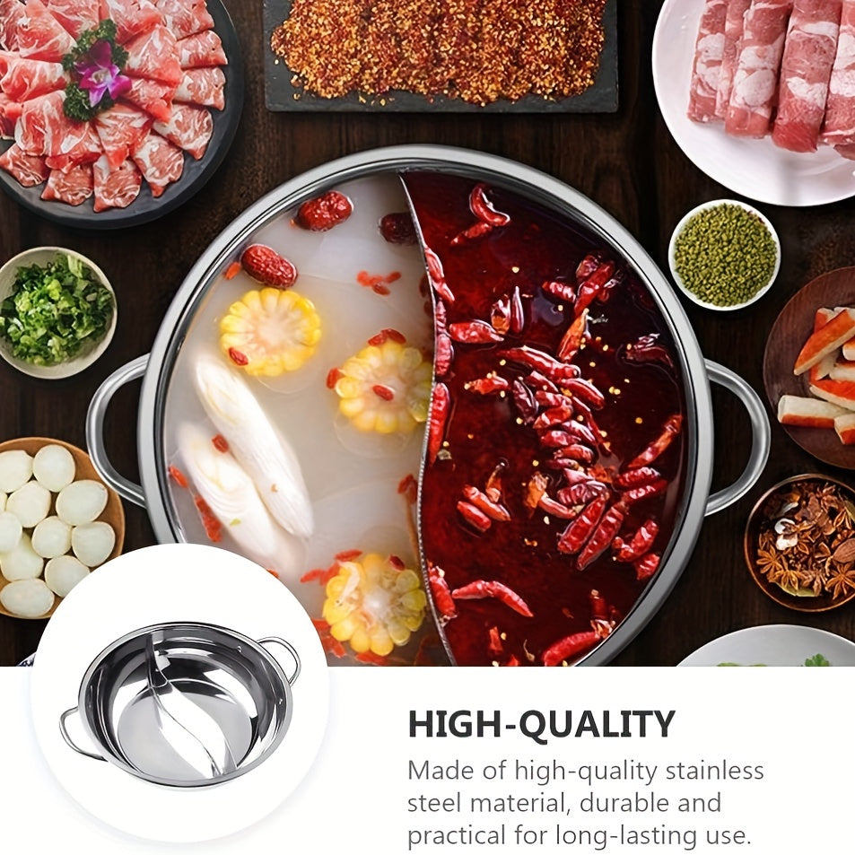 Dual Sided Stainless Steel Hot Pot with Divider for Shabu Shabu, Gas and Induction Compatible