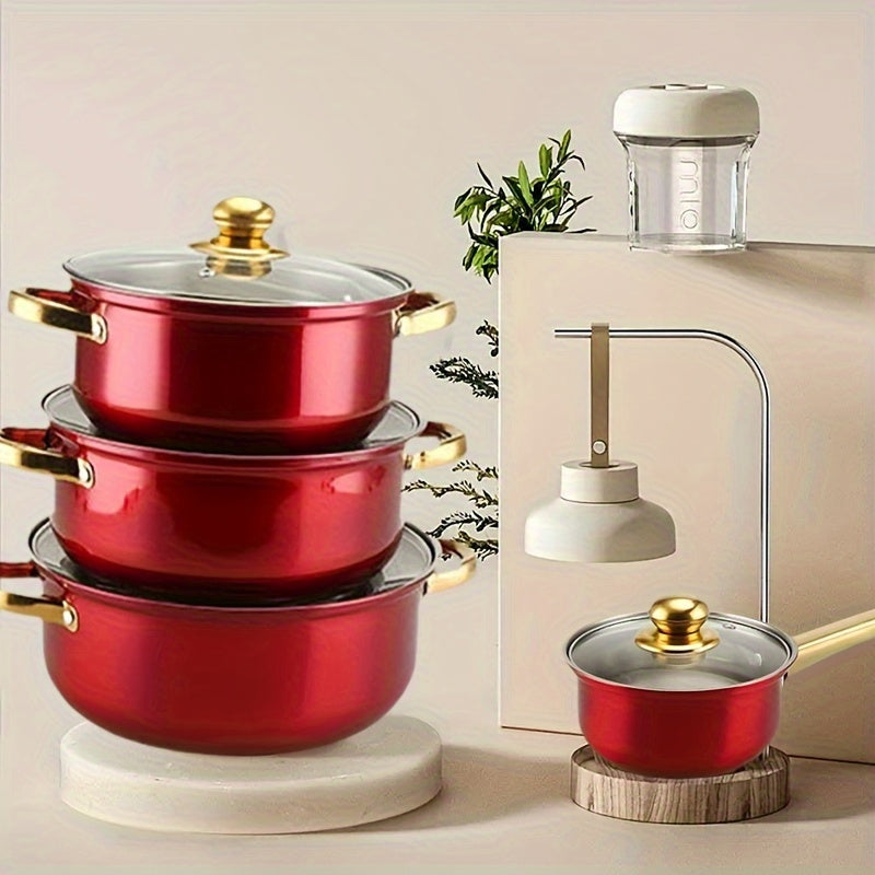 12-Piece Red Aluminum Non-Stick Cookware Set with Pots and Pans