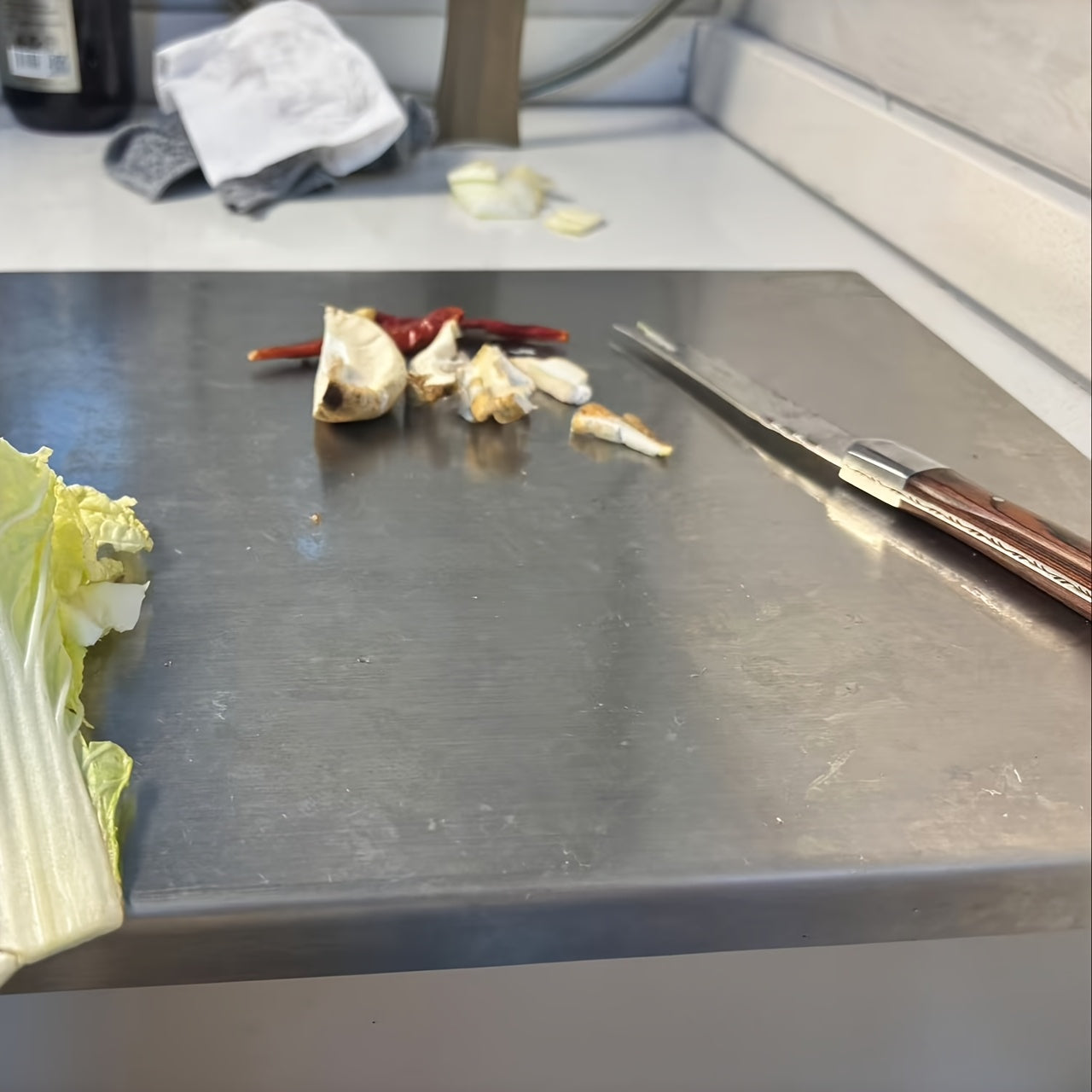Large Stainless Steel Cutting Board with Lip Food-Safe for Meat Fruit Vegetables