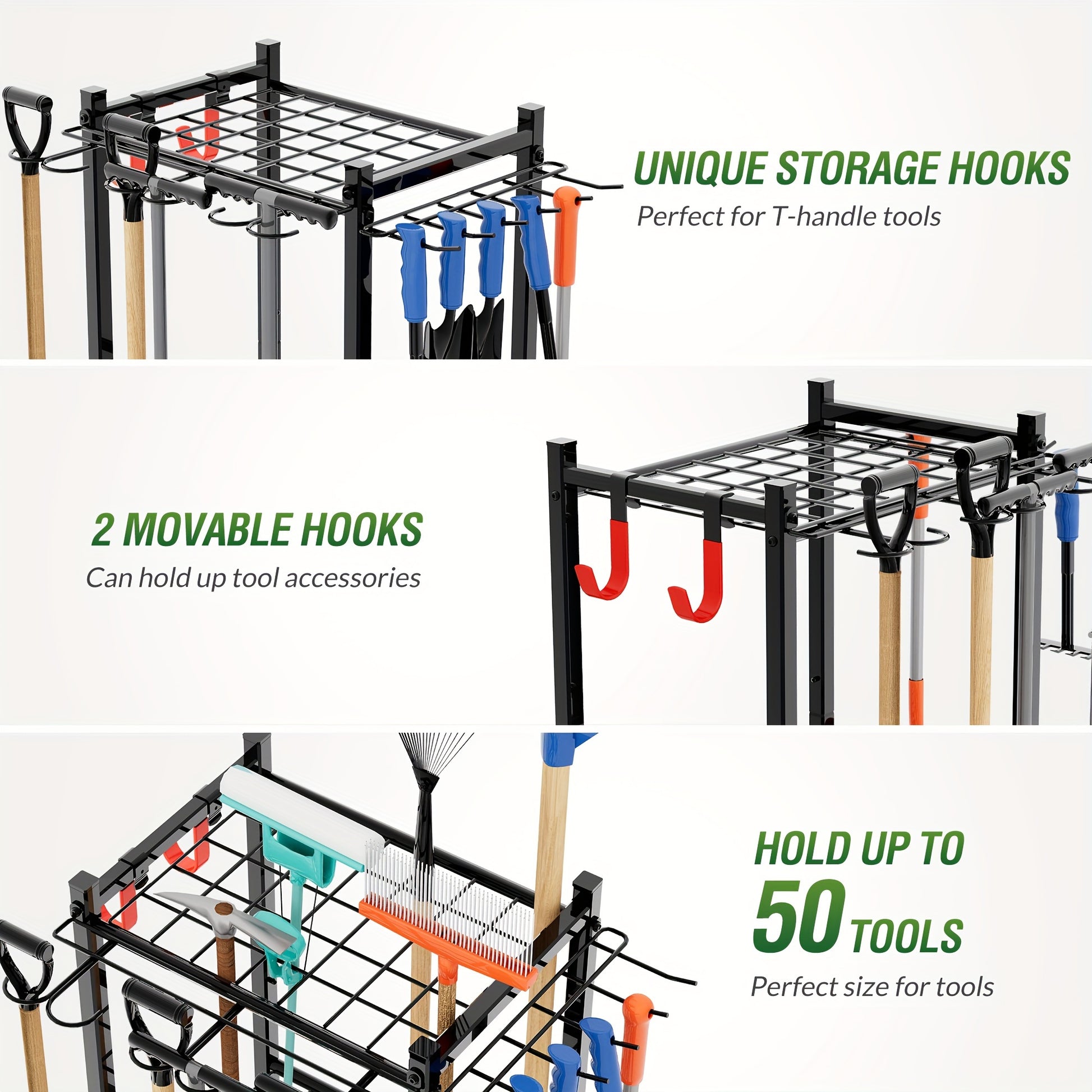Black Metal Garden Tool Organizer Holds 50+ Tools Adjustable Compact Garage Shed Storage