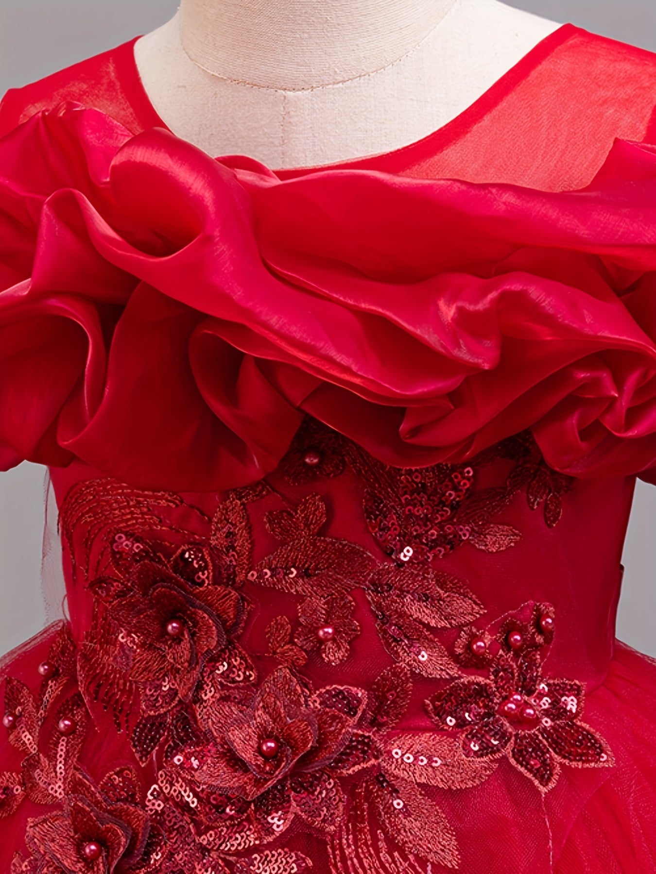 Girls Embroidered Mesh Ball Gown Dress for Parties and Holidays Long Length