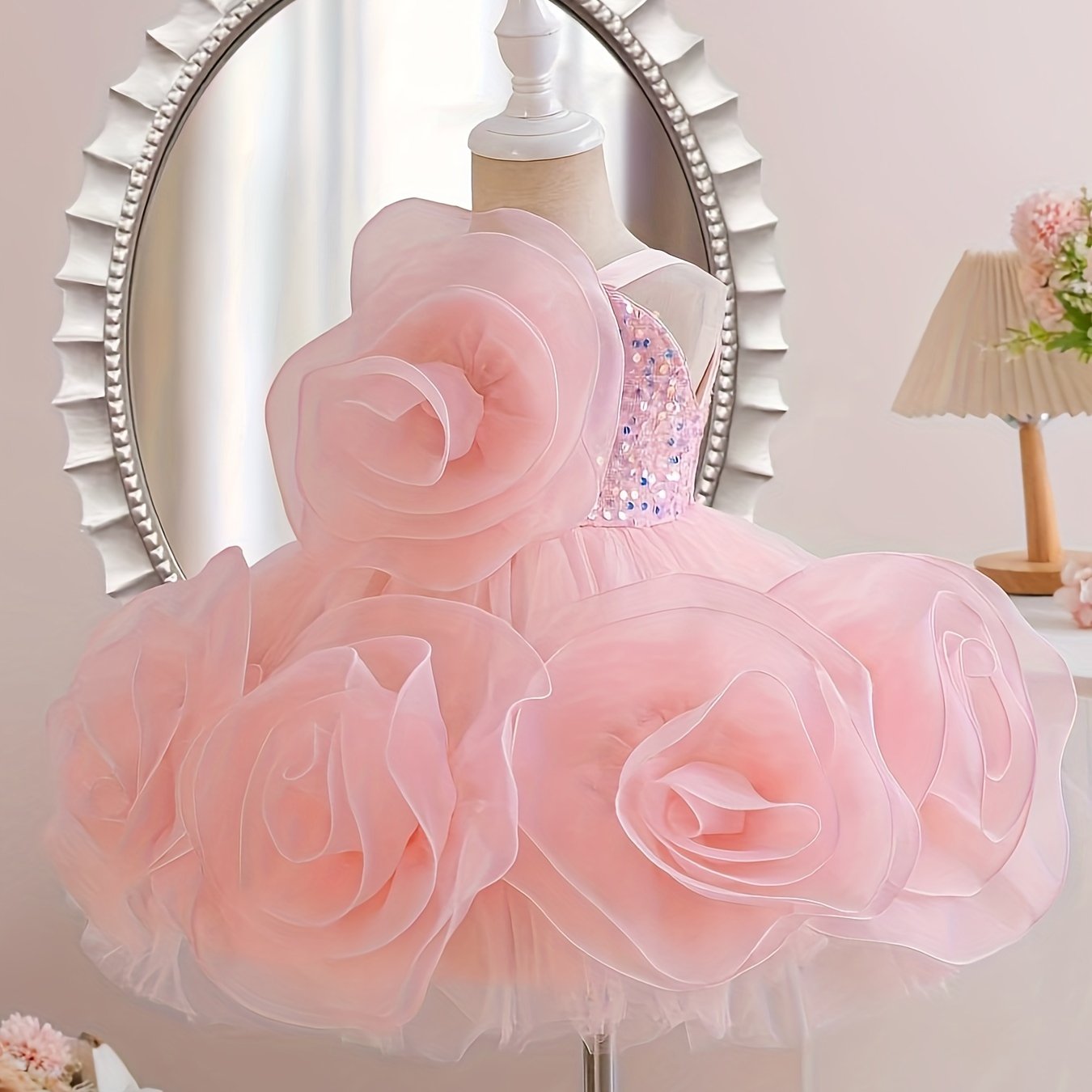 Baby Girl Dress Sleeveless Mesh Floral Party Formal Knee Length Geometric Pattern