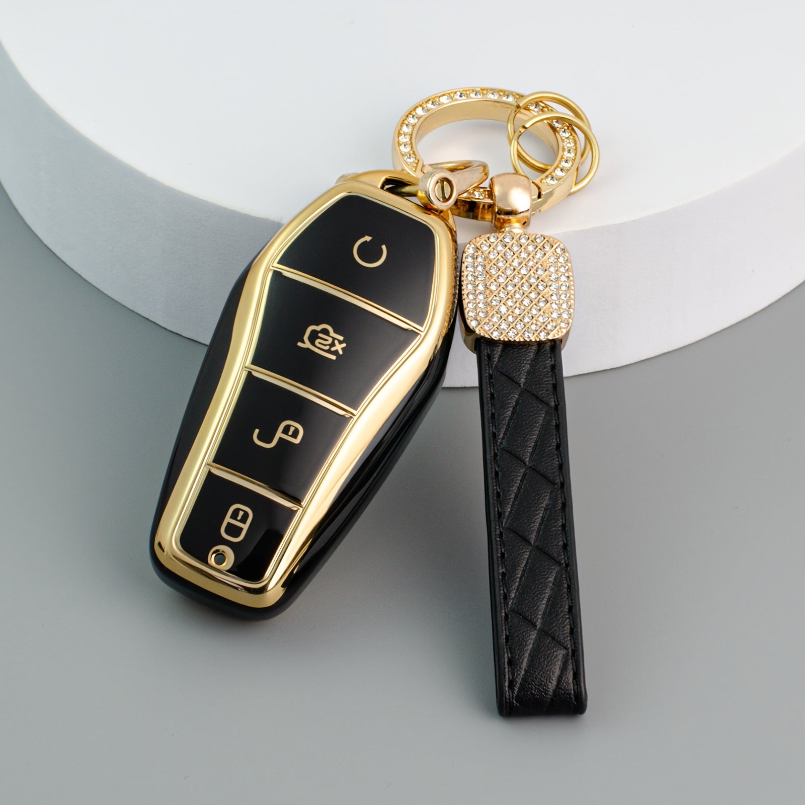 Elegant TPU Key Fob Cover with Crystal Keychain for EV Remote Control