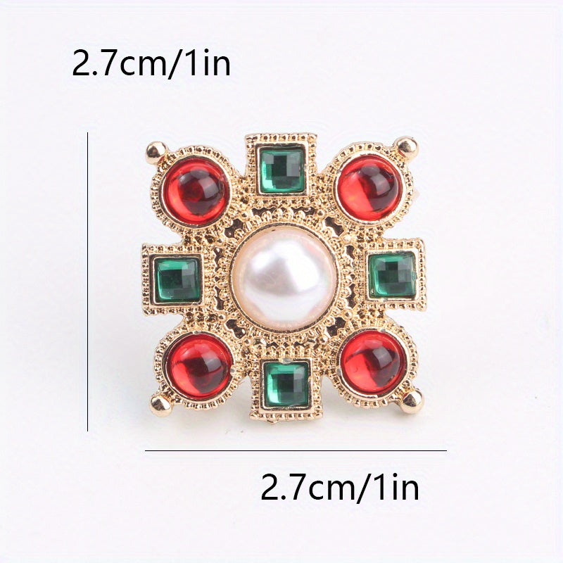 Vintage Baroque Style Brooch with Rhinestones and Gold Finish for Women
