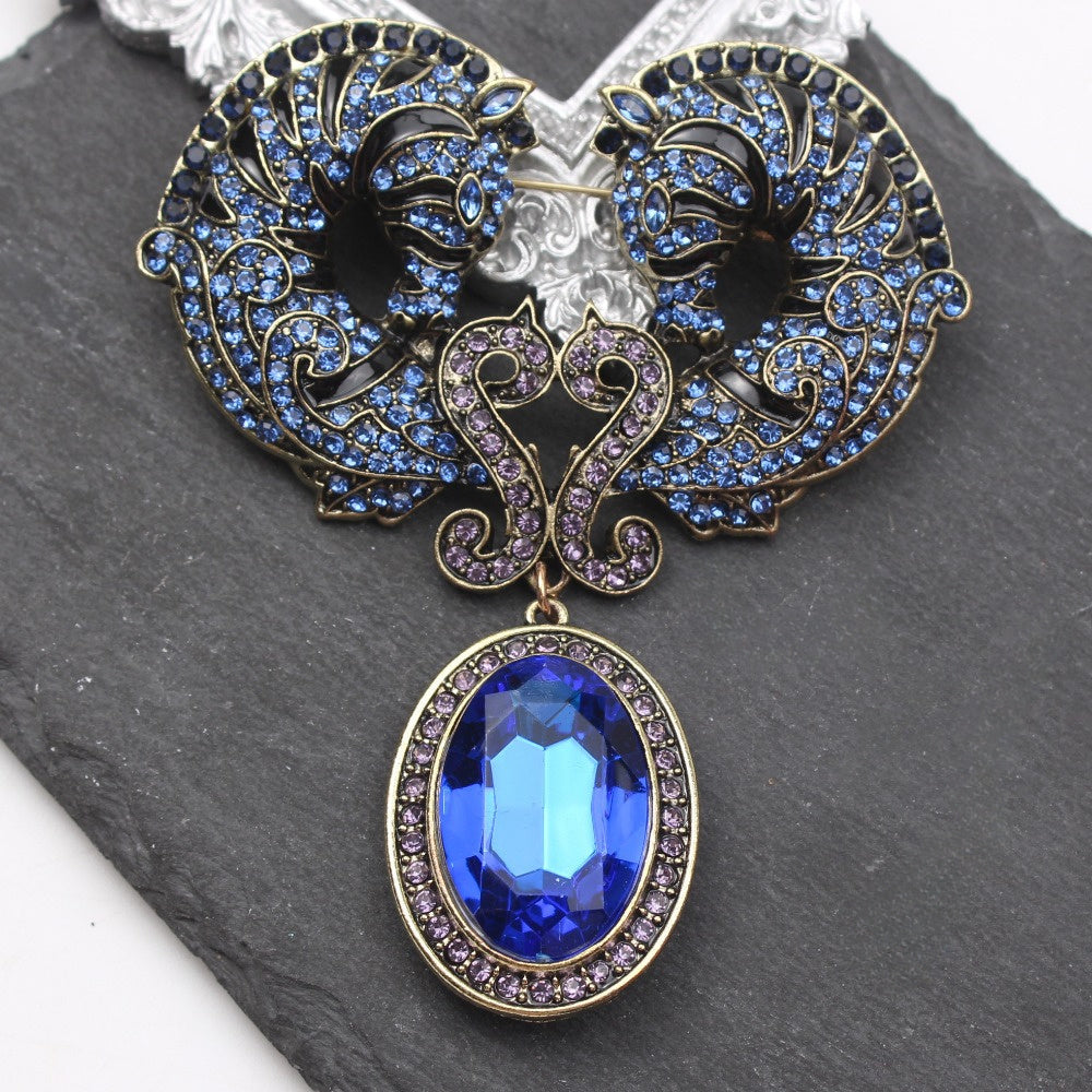 Vintage Seahorse Brooch with Rhinestones and Enamel for Women