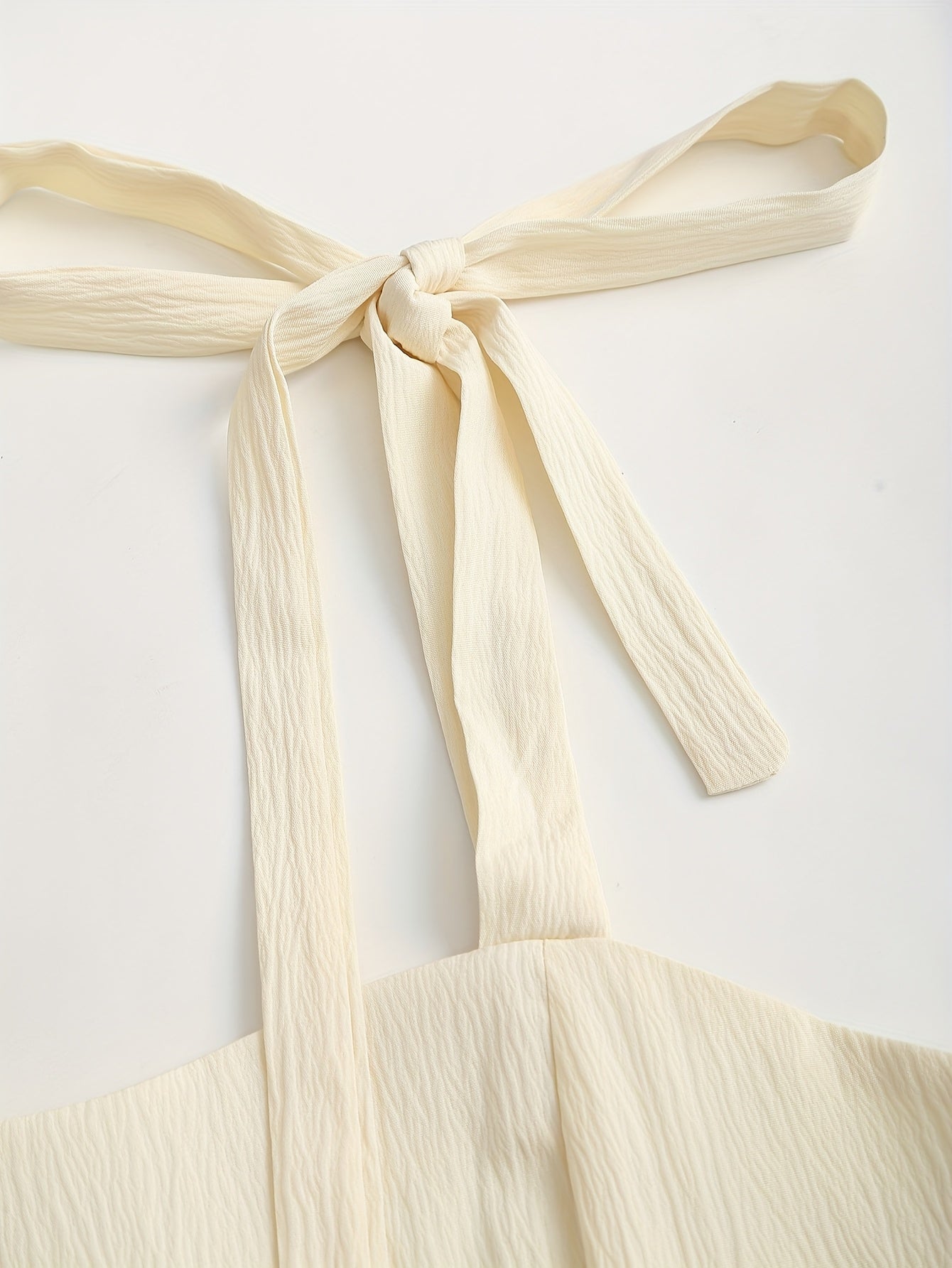 Women's Elegant Woven Polyester Jumpsuit with Lace-Up Waist and Strappy Back