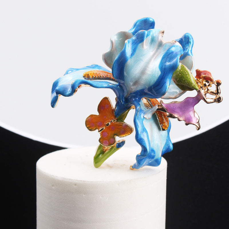 Vintage Enamel Iris Pixie Brooch Rhinestones Irregular Shape Jewelry