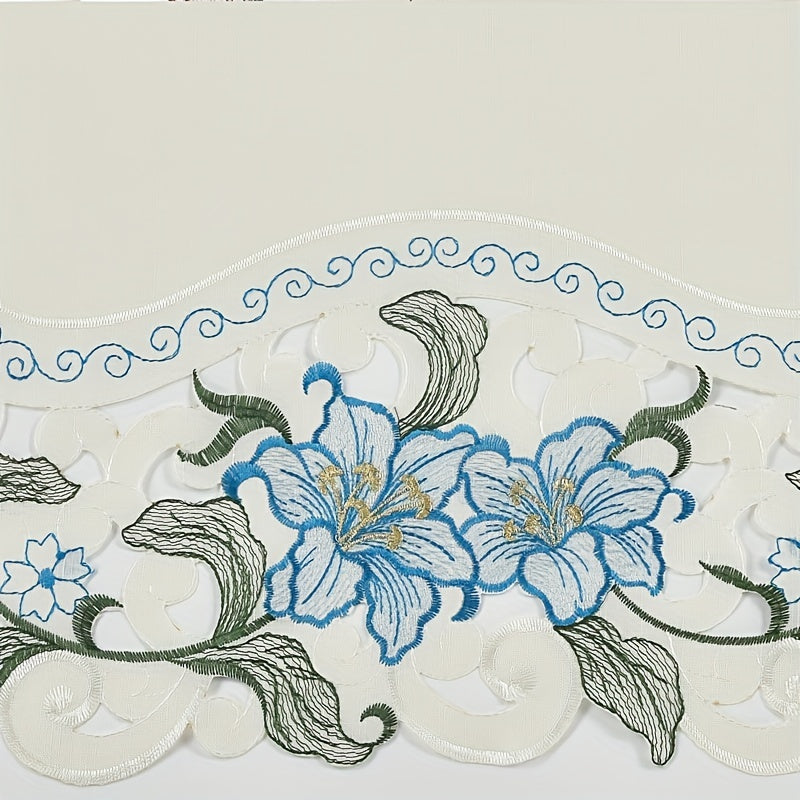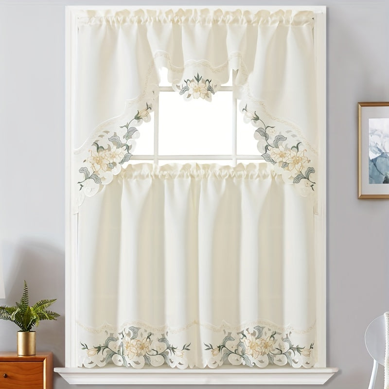 3-Piece Beige Floral Embroidered Polyester Window Curtains for Bedroom Living Room Kitchen