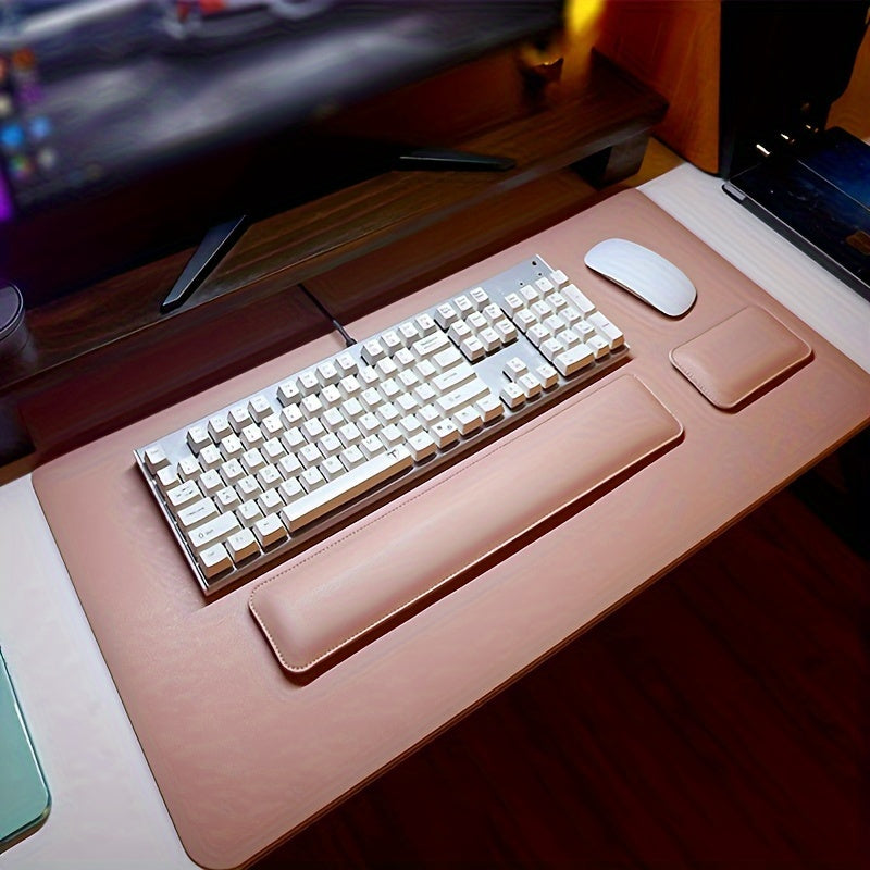 Ergonomic Faux Leather 3-Piece Desk Set with Large Mouse Pad Keyboard Mat and Wrist Support