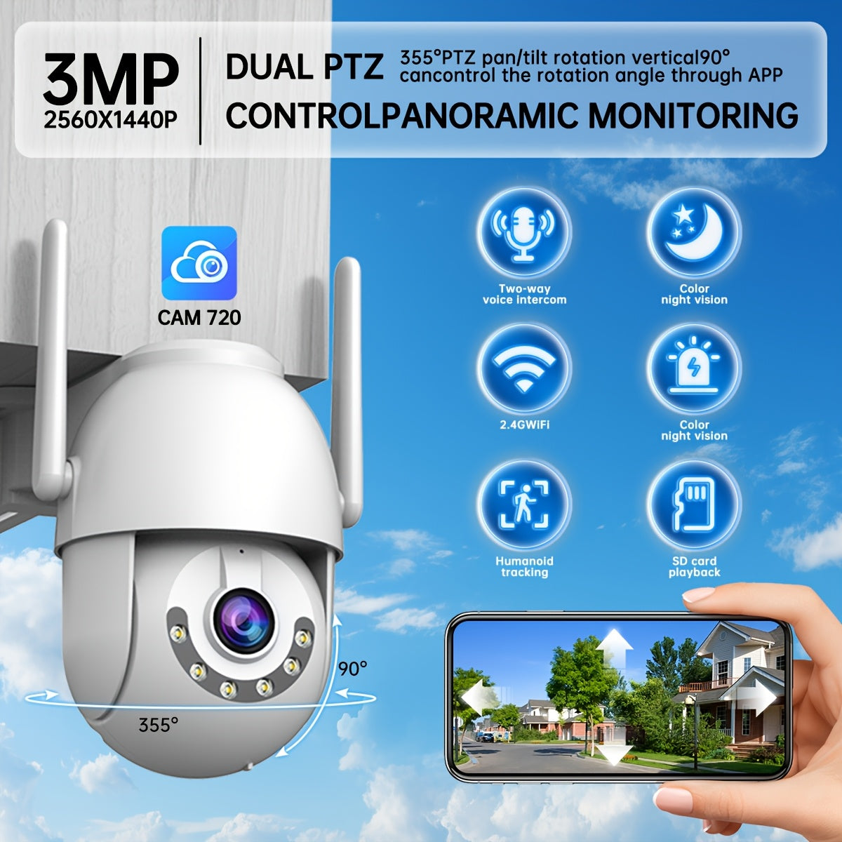 3MP HD WiFi Indoor Outdoor Security Camera with Two-Way Audio AI Motion Detection Night Vision