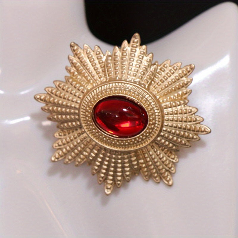 Enamel Brooch Pin Gold-Tone Starburst with Red Gem Jewelry Accessory