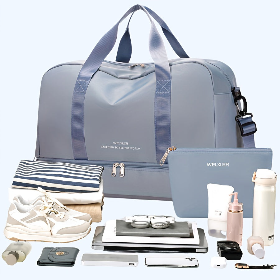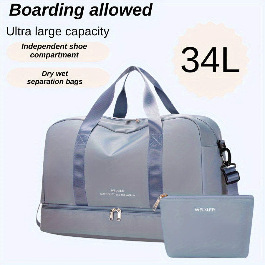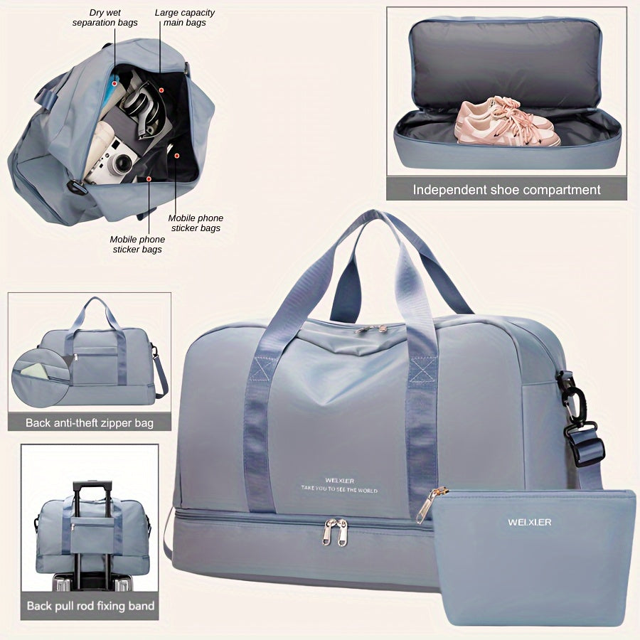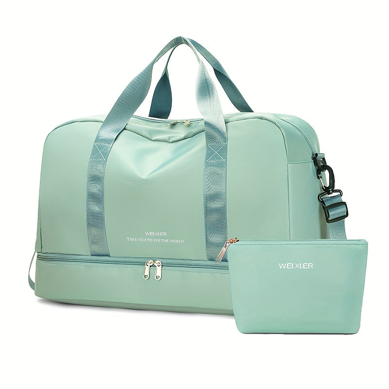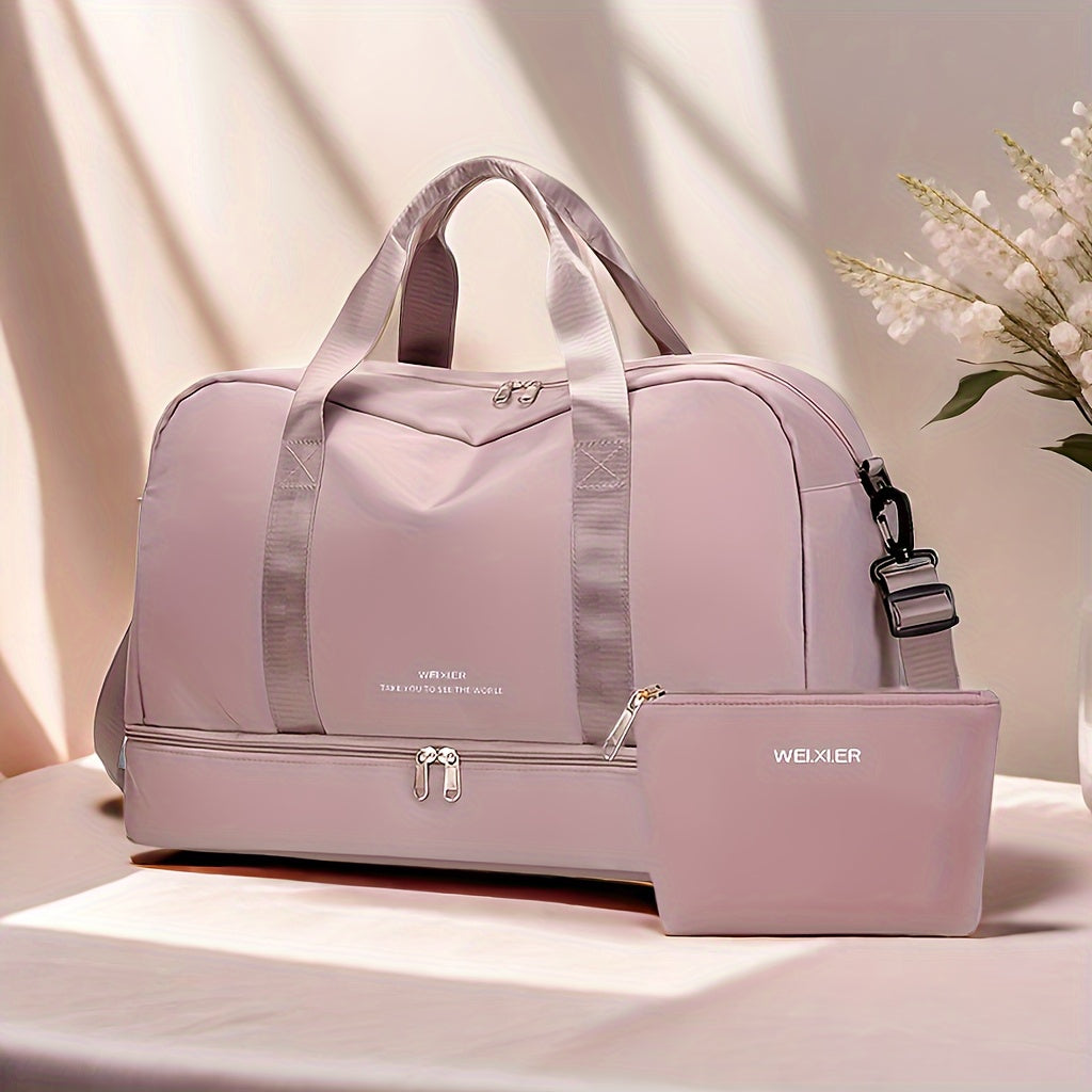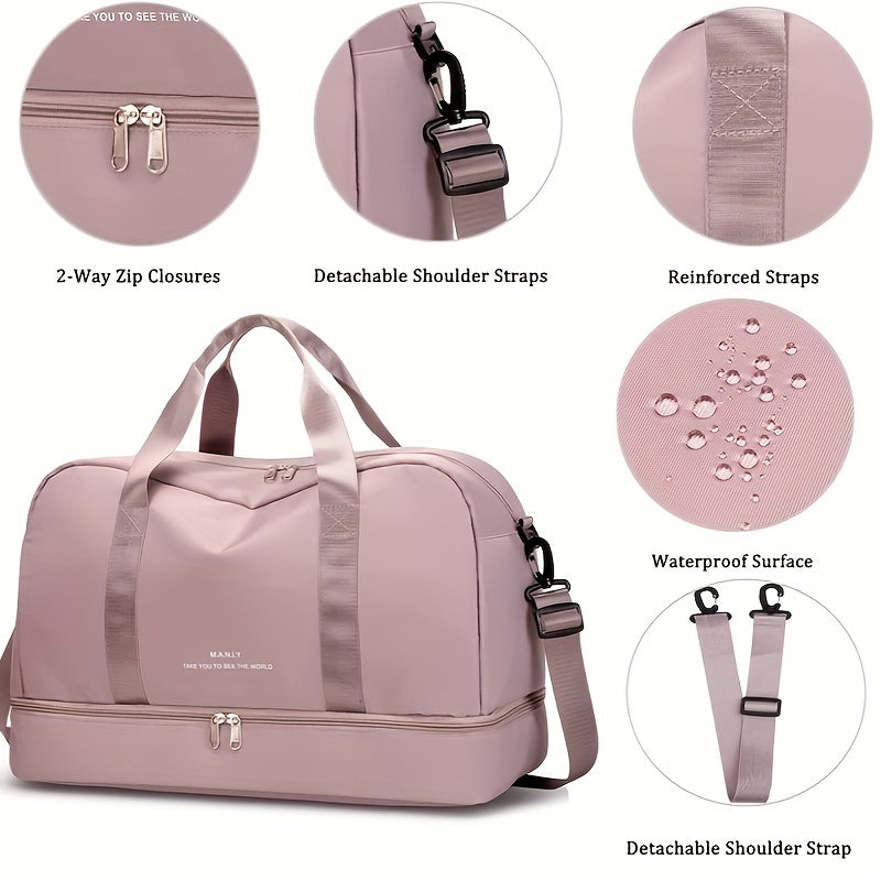 Travel Bag with Detachable Pouch Nylon Sports Fitness Makeup Weekend Trip Black Pink Green