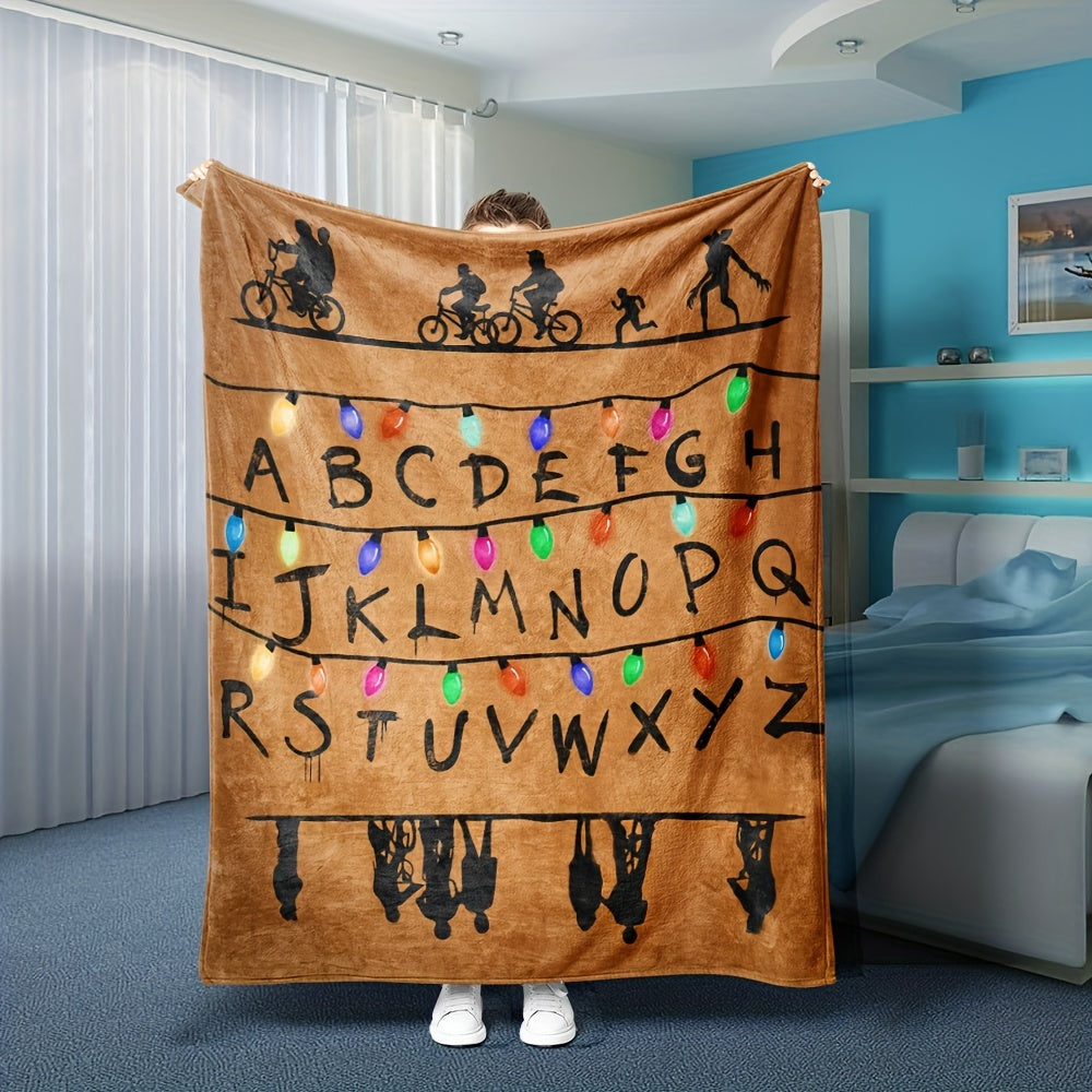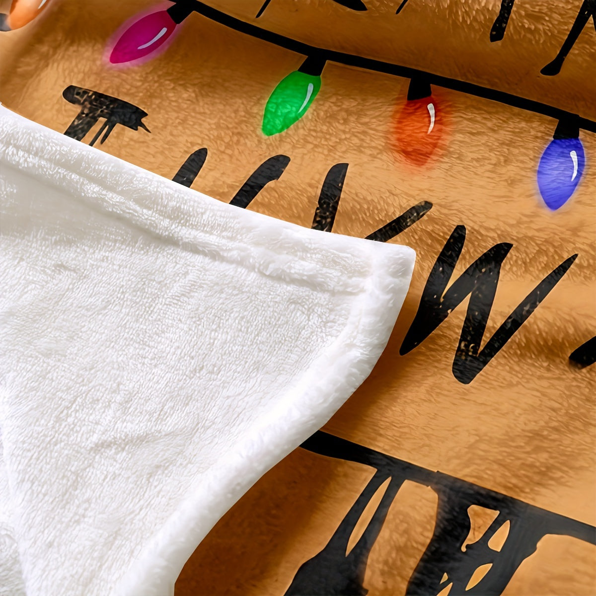 Flannel Blanket and Throw Set Cozy Home Decor for Couch Warmth Soft Plush Material Christmas Lights Design