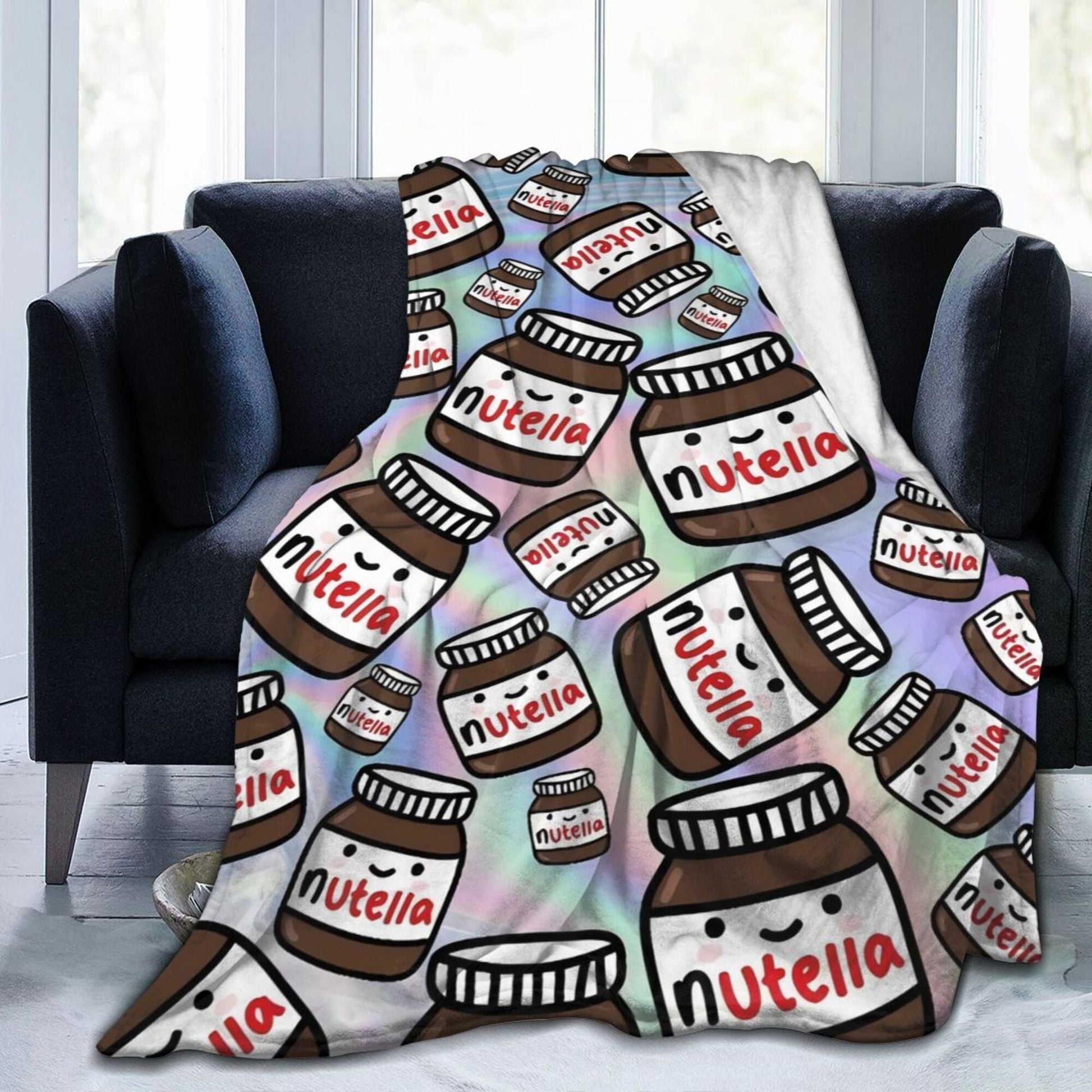Flannel Blanket with Nutella Chocolate Hazelnut Design Soft Polyester Anime Print for All Seasons