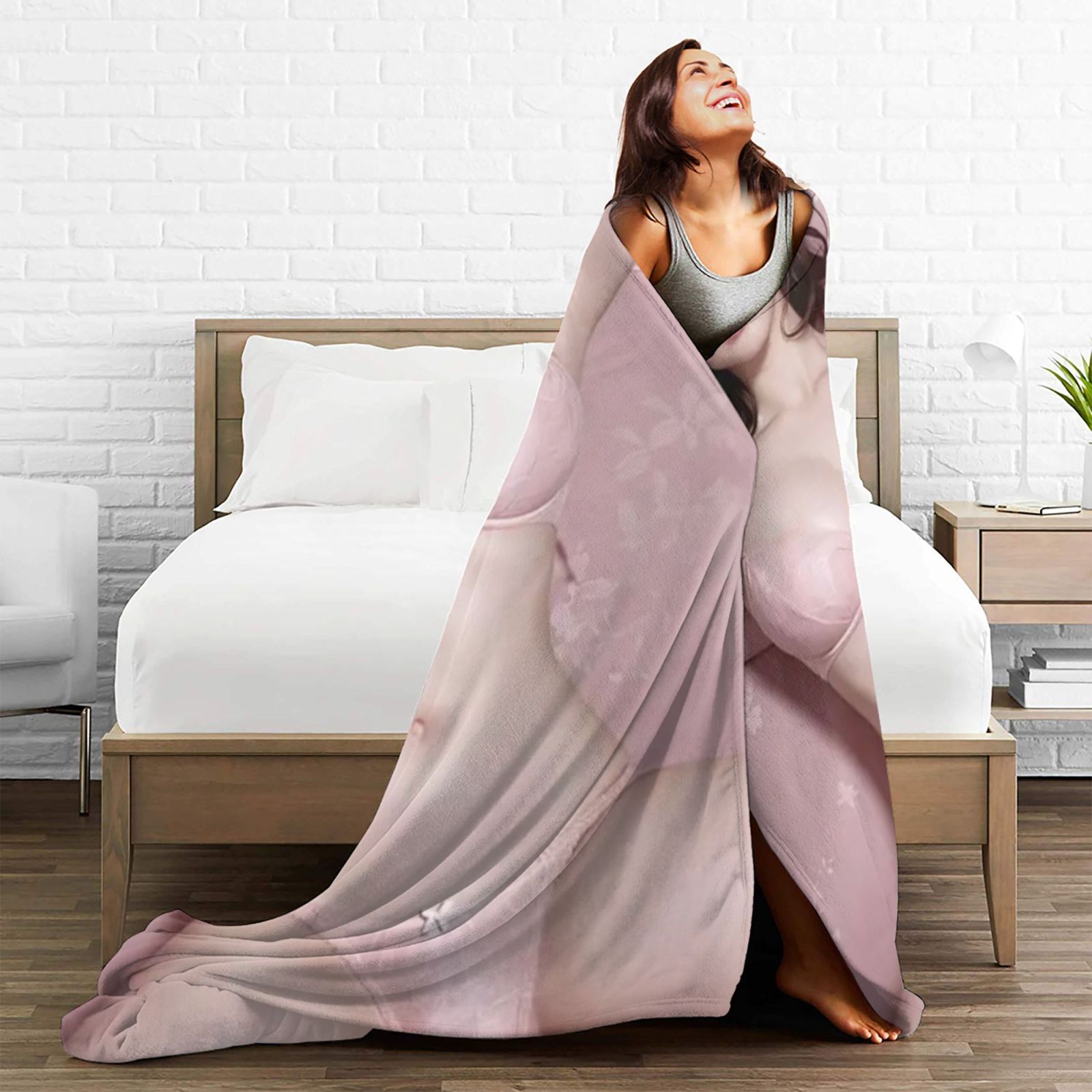 Flannel Fleece Blanket with Girl Print Soft Warm All-Season Nap Throw for Sofa Bed Camping