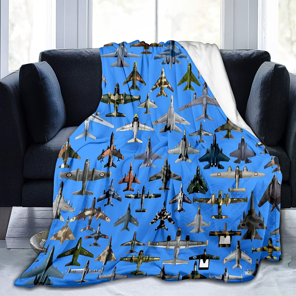Fleece Throw Blanket with Military Jet Aircraft Pattern Hypoallergenic Stain-Resistant