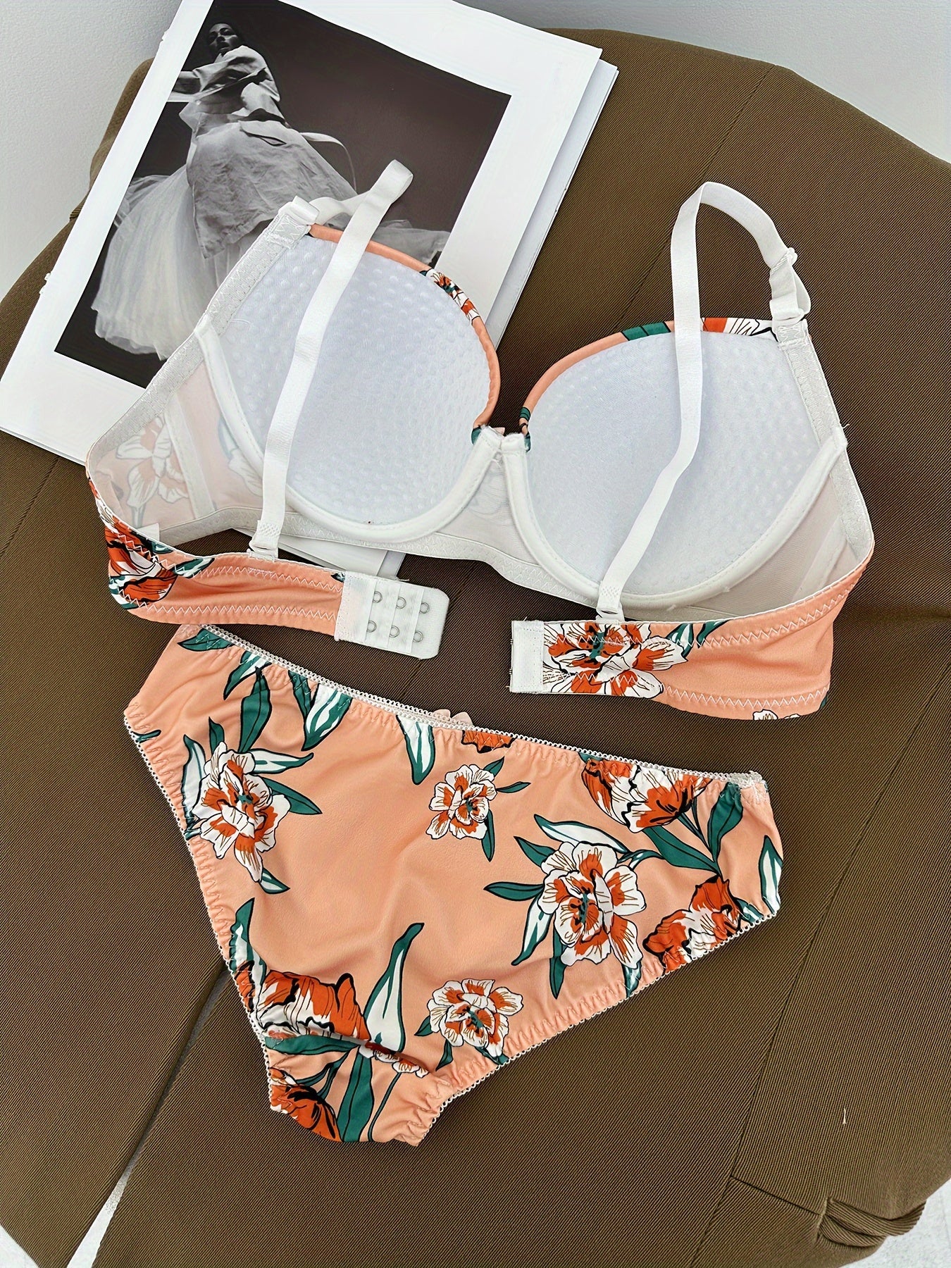 Women's Floral Lingerie Set with Steel Underwire and Breast Enhancement
