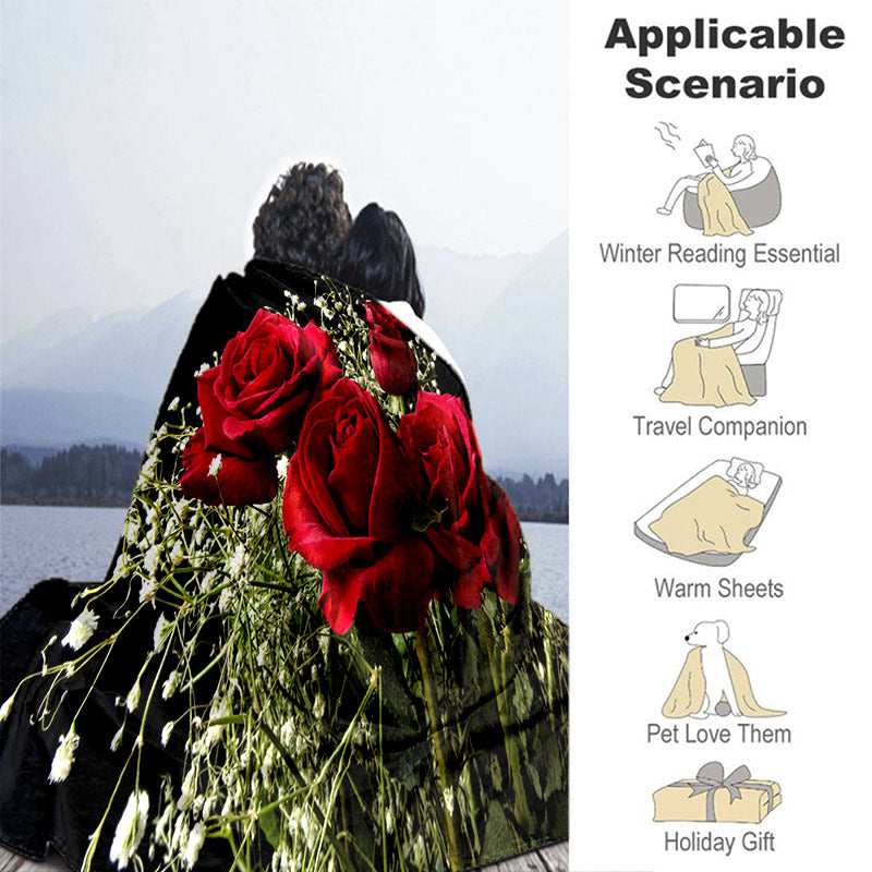 Floral Flannel Bed Sheet Digital Print for Wedding Anniversary or Valentine's Day Queen Size