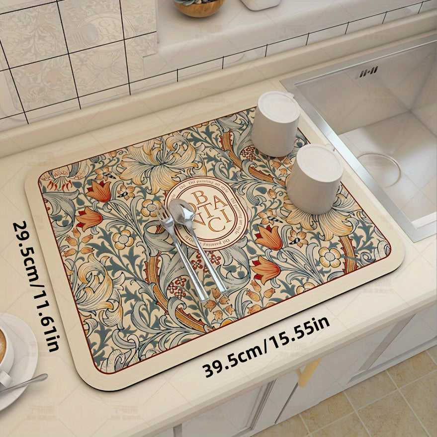 Floral Pattern Coffee Machine Mat Multi-Functional Dish Drying Pad Non-Slip Soft Kitchen Bathroom