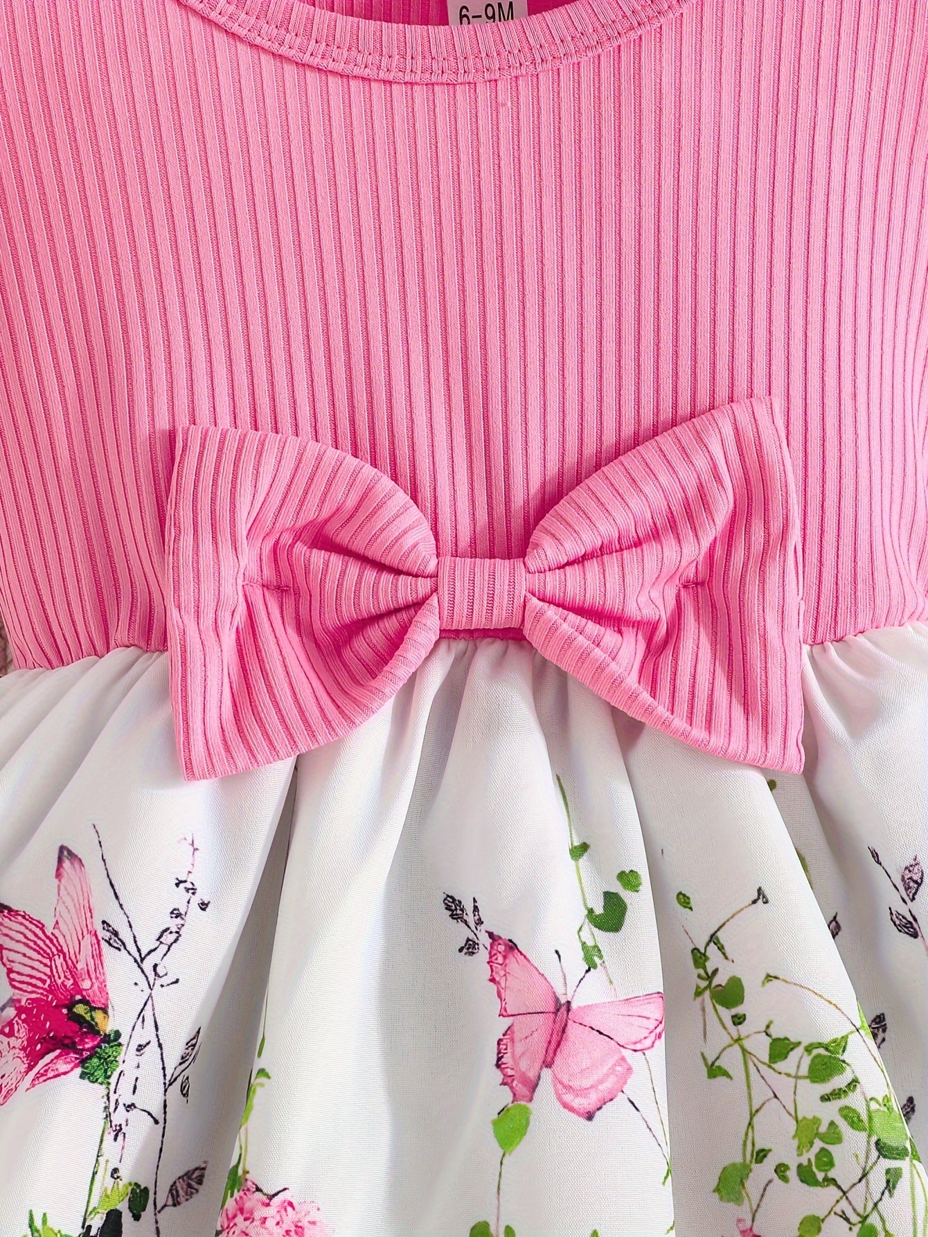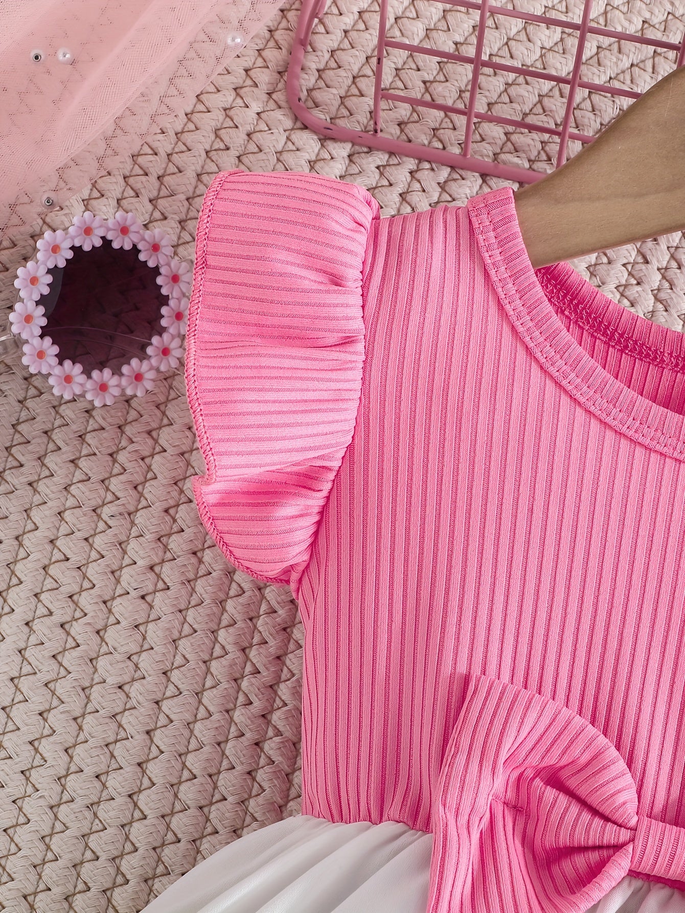 Girls Floral Ruffle Sleeve Dress Polyester Knit Casual Spring Summer Ages 12 and Under