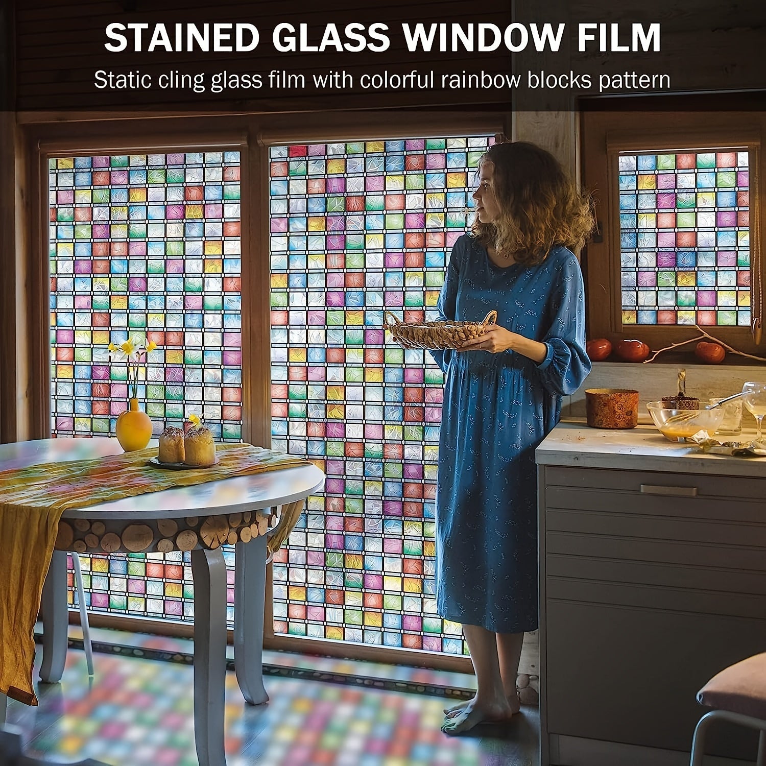 Frosted Privacy Window Film with Crescent & Diamond Pattern, Heat Control, No-Glue, Semi-Transparent, 9mil PVC