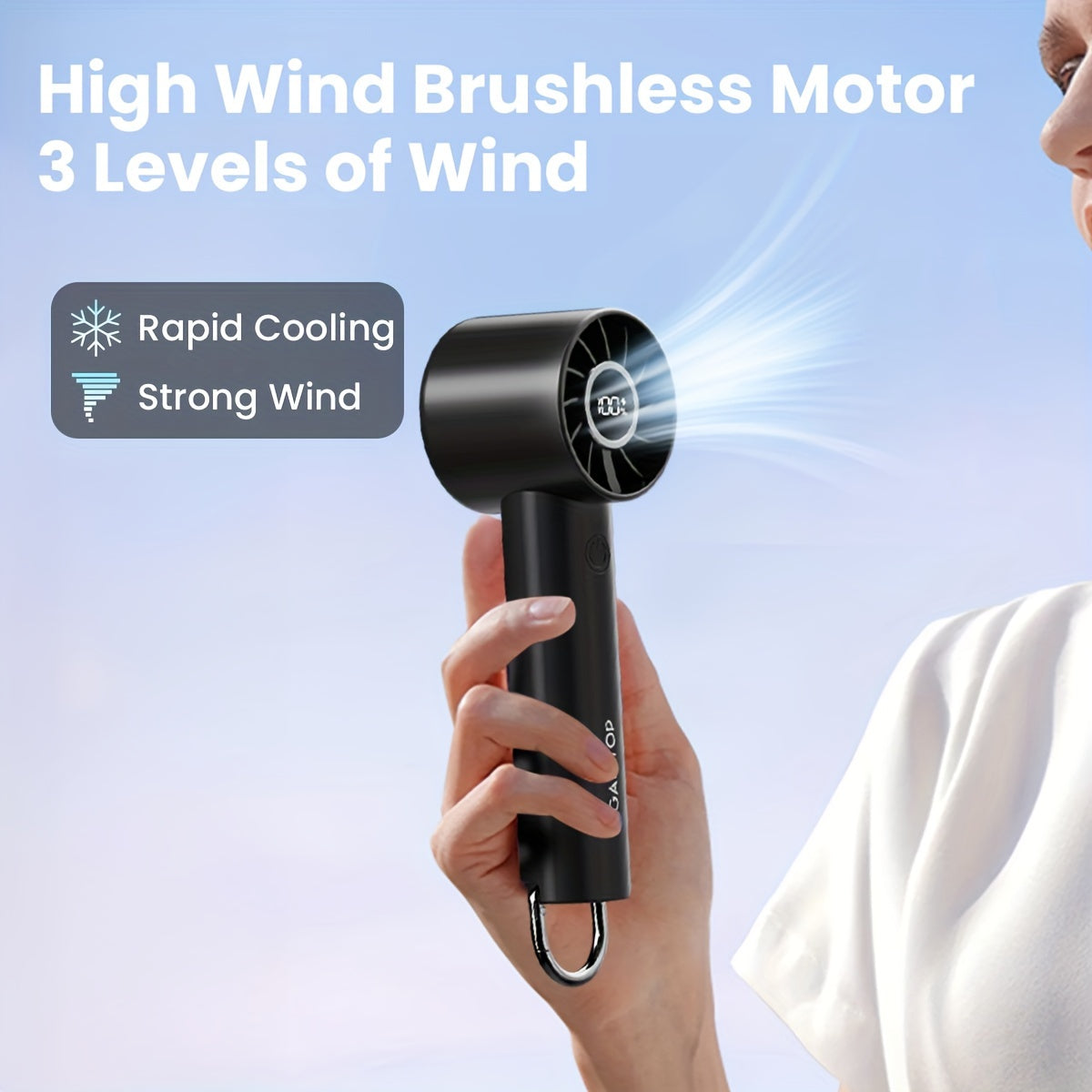 Rechargeable Mini Fan with LED Display and Flashlight Portable Handheld Fan for Travel Black