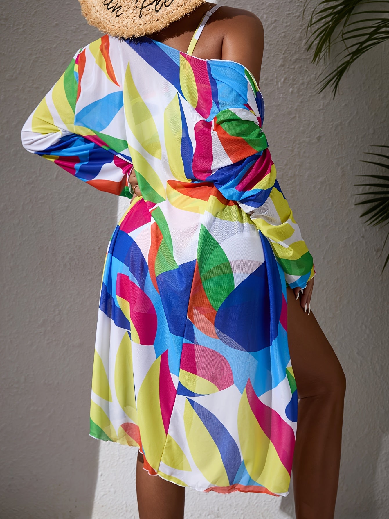 Geometric Color Block Print Bikini Set for Women with Removable Padding