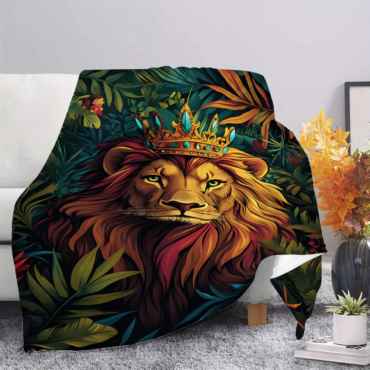 Contemporary Jungle Lion Print Flannel Blanket for Bed Sofa Car 200-250gsm