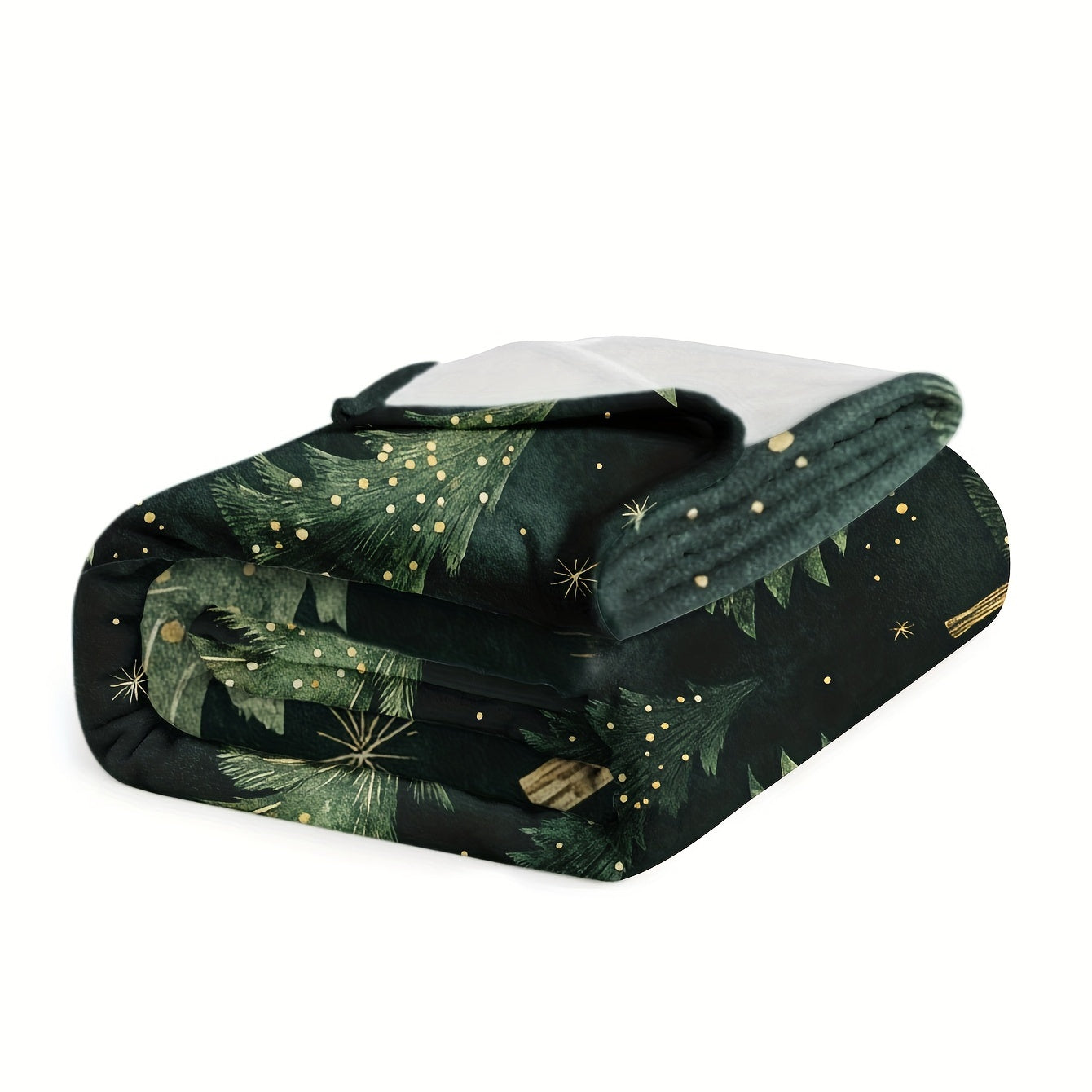 Green Christmas Tree Print Flannel Fleece Throw Blanket Soft Warm Machine Washable