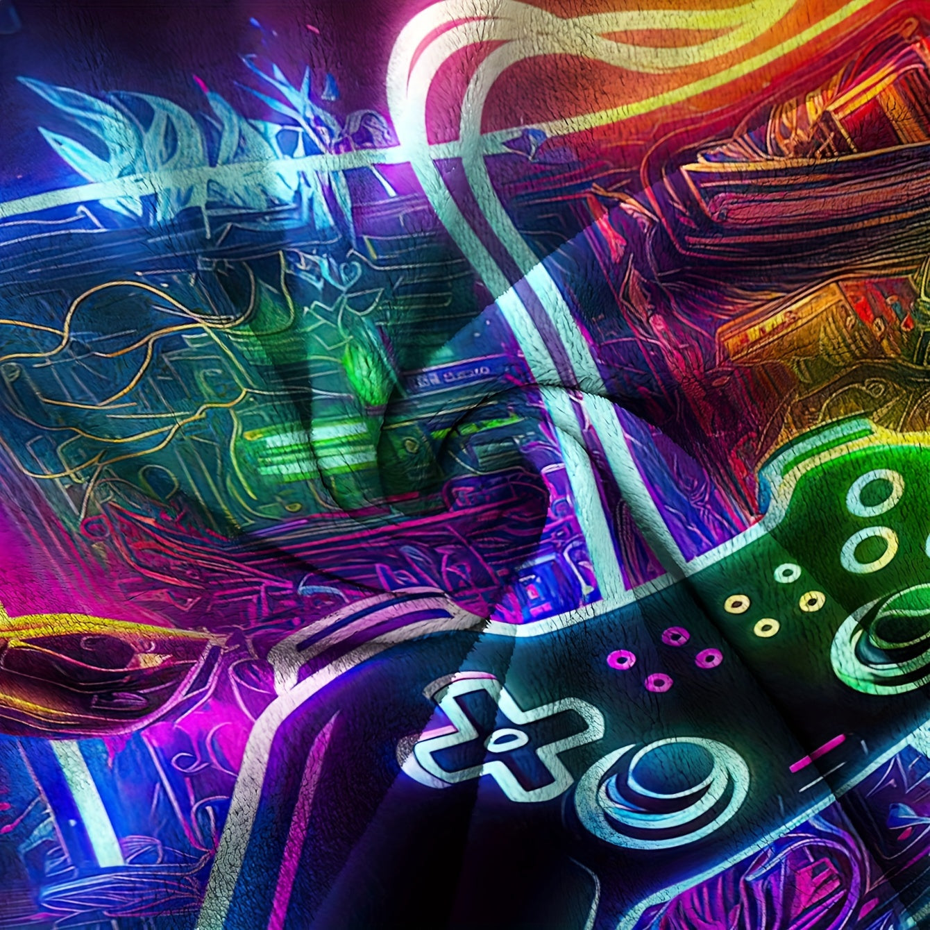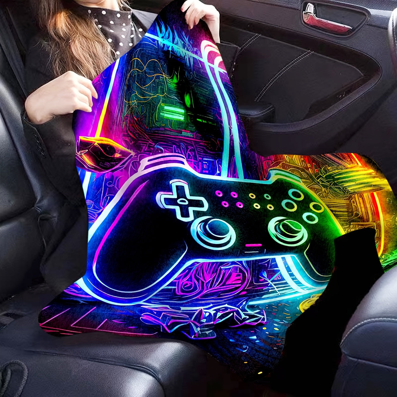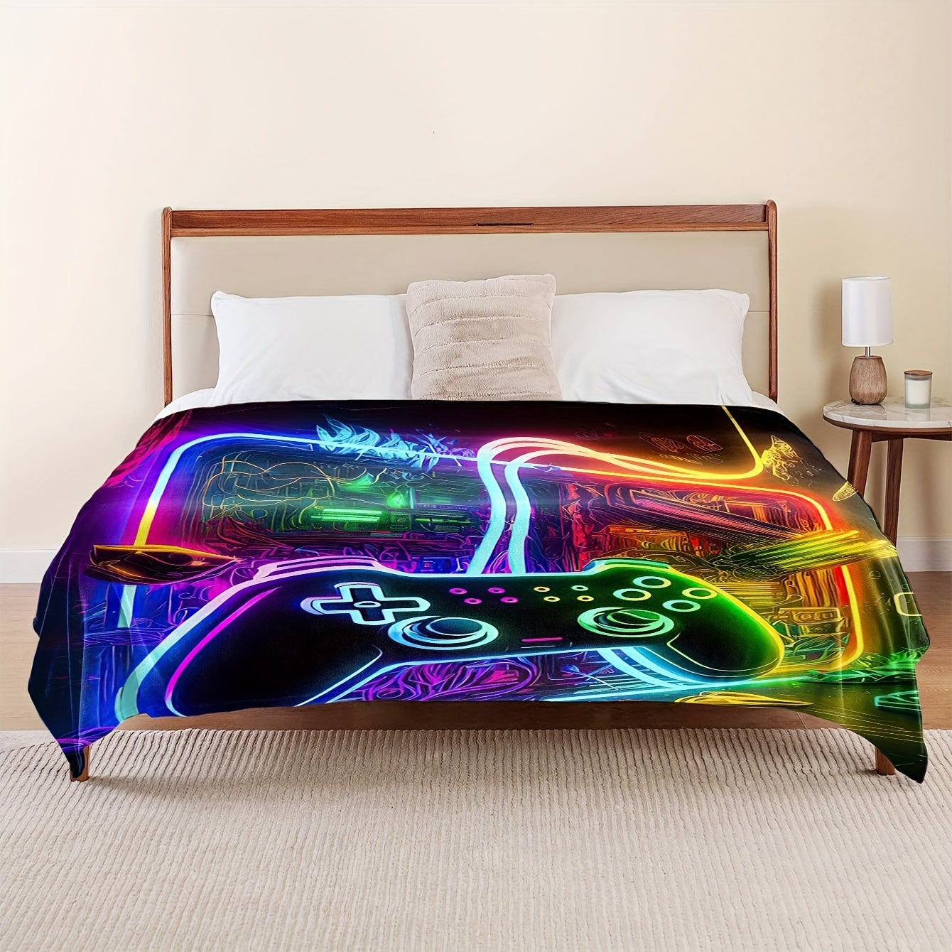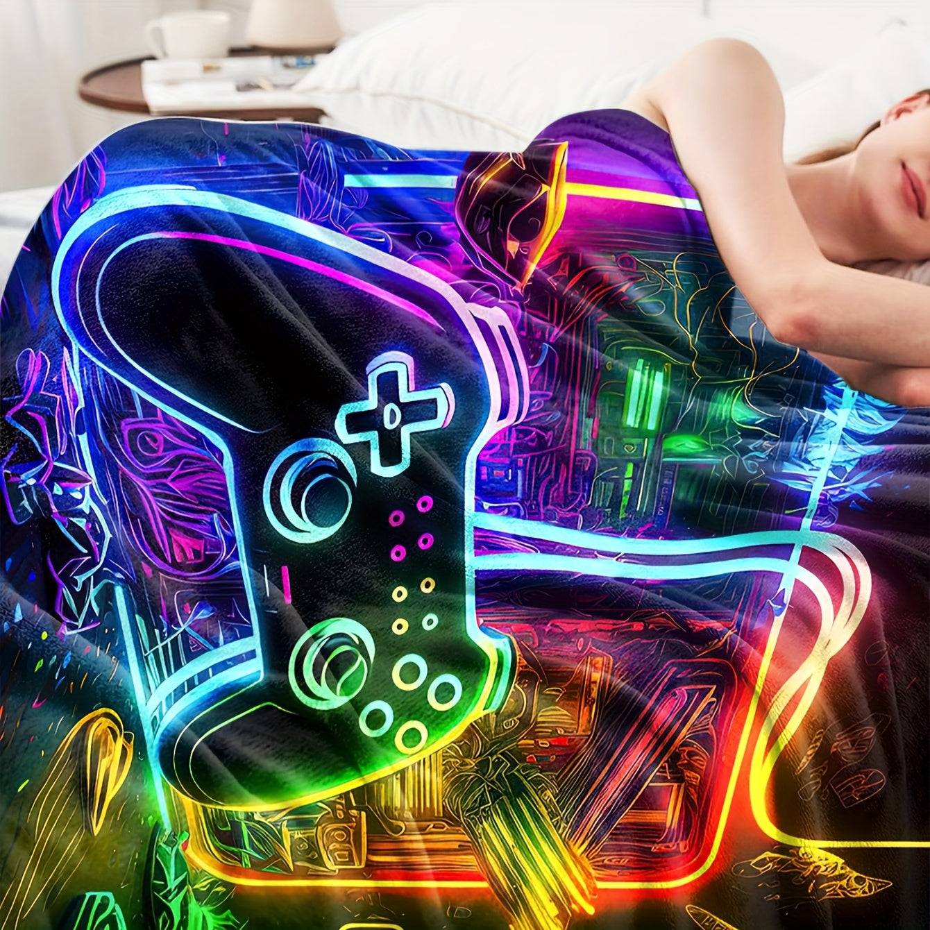 Flannel Throw Blanket with Game Controller Design for Couch Bed Camping and Gift