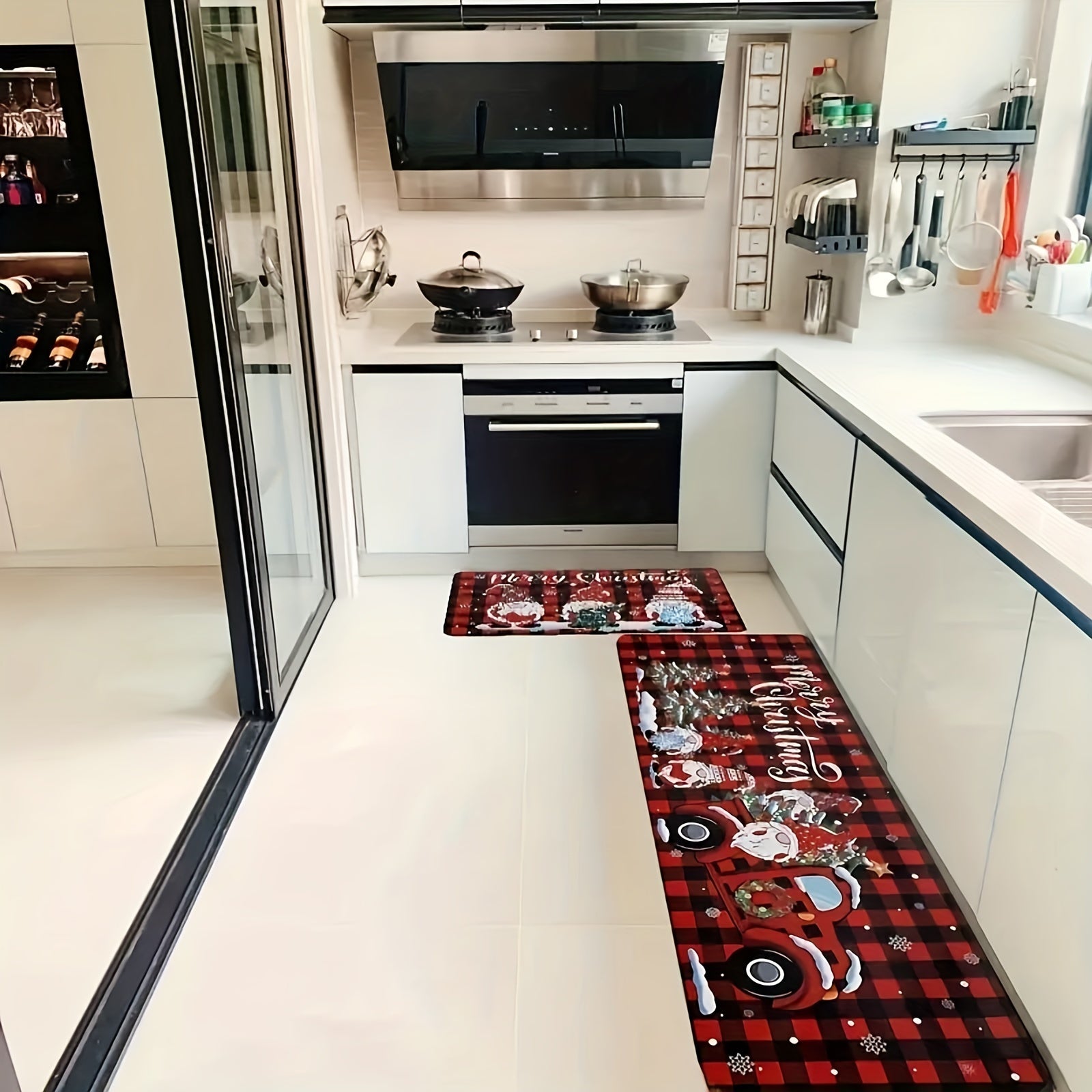 Christmas Gnome Door Mat Non-Slip Welcome Rug Polyester Rectangular Entryway
