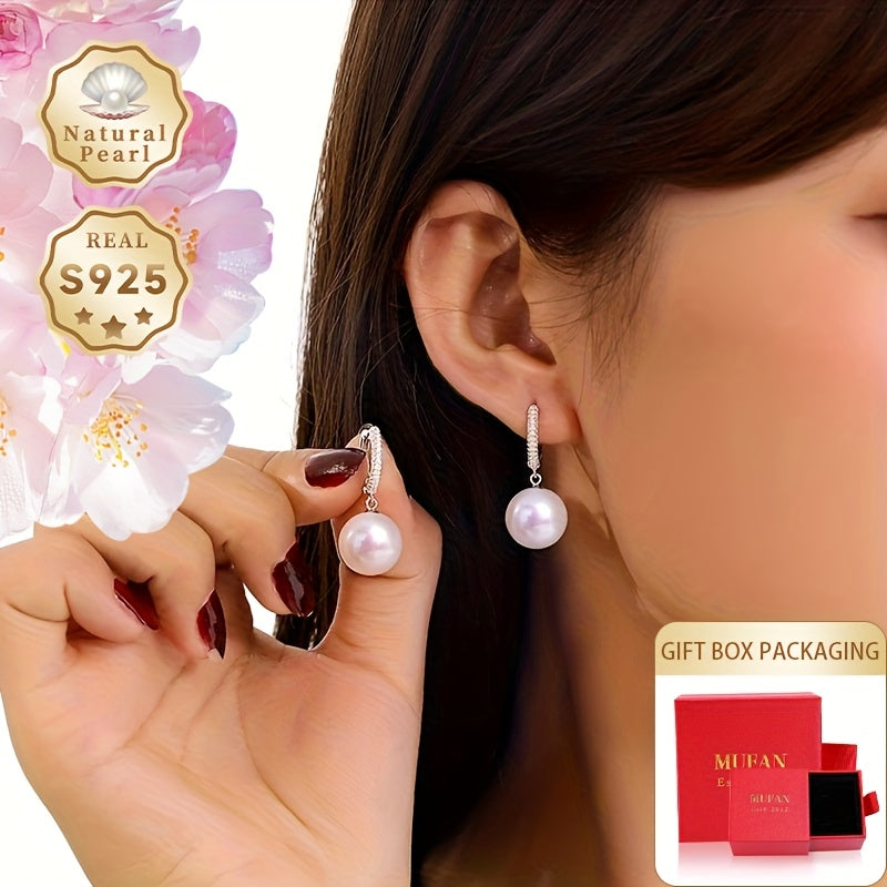 Sterling Silver Hoop Earrings with Freshwater Pearl for June Birthstone Gift
