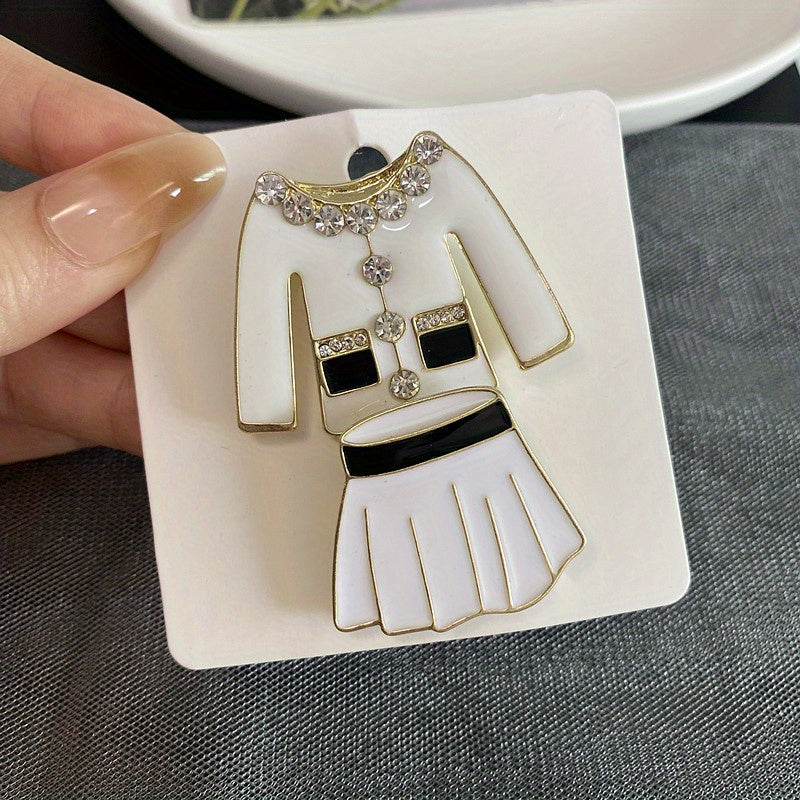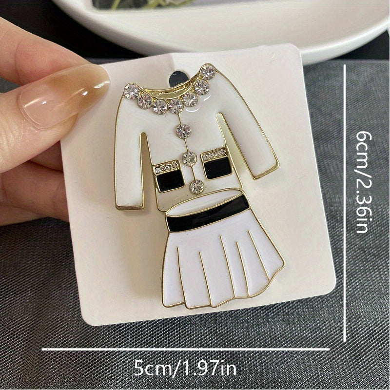 Vintage Black and White Enamel Rhinestone Skirt Set with Brooch and Jacket