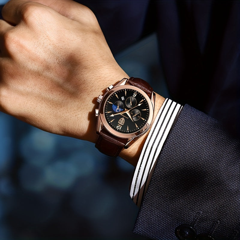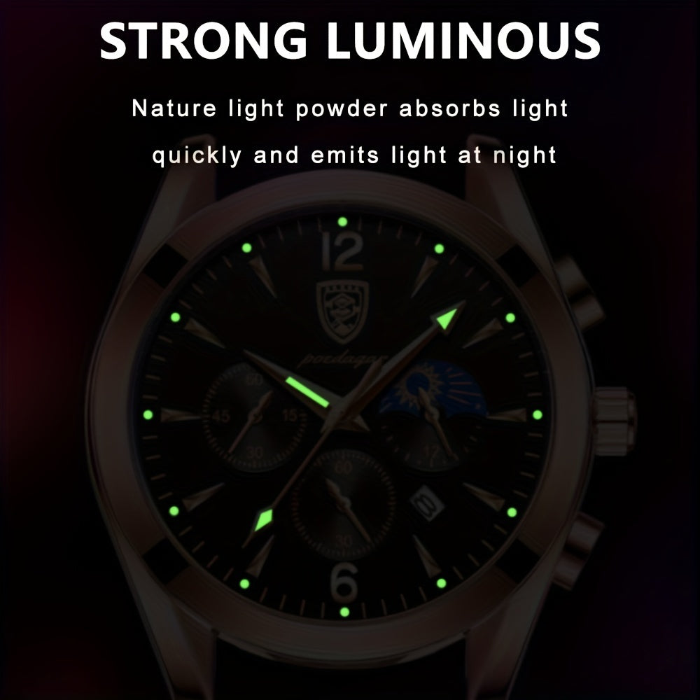 Men's Stainless Steel Quartz Watch with Glow Calendar and Gift Box