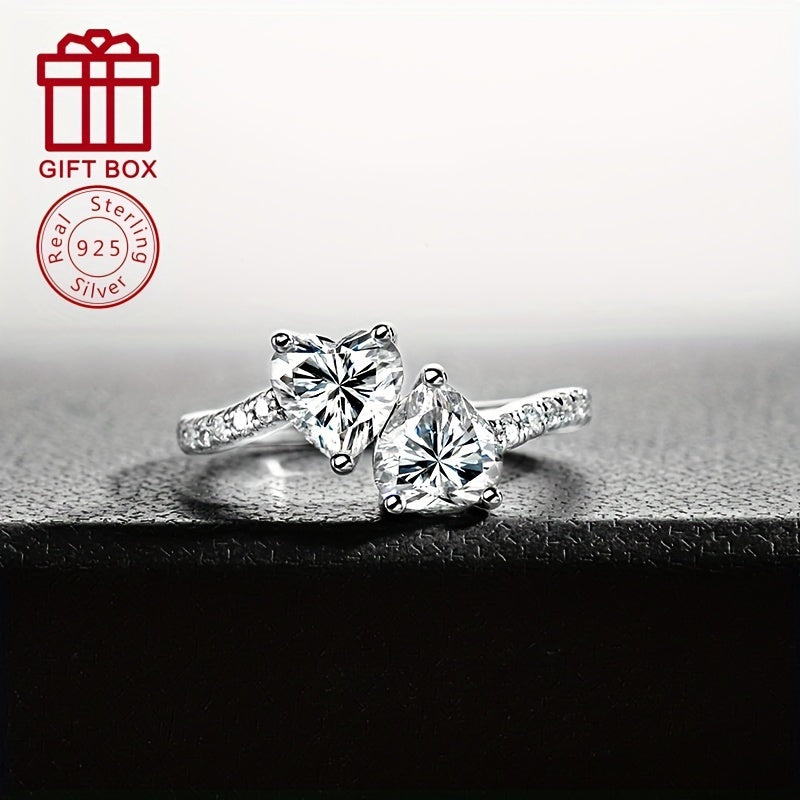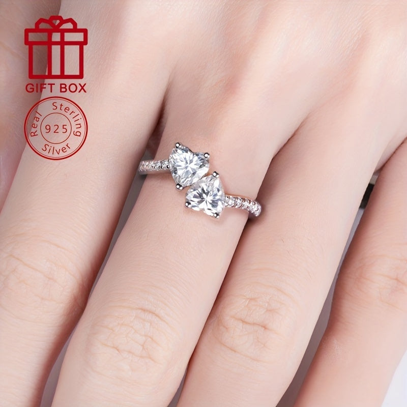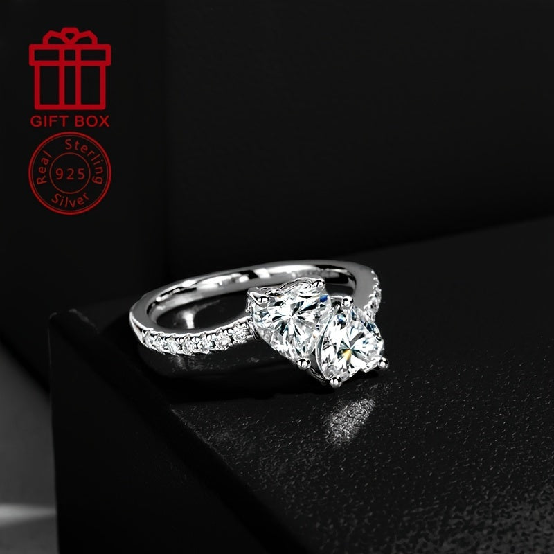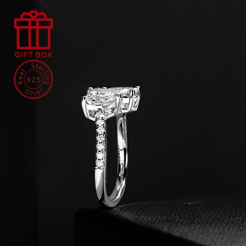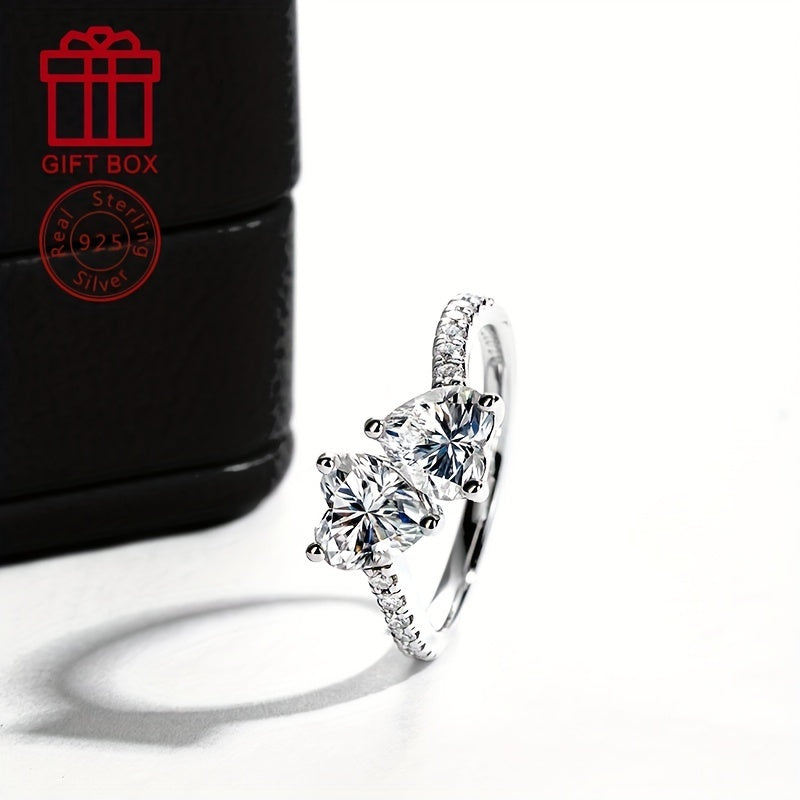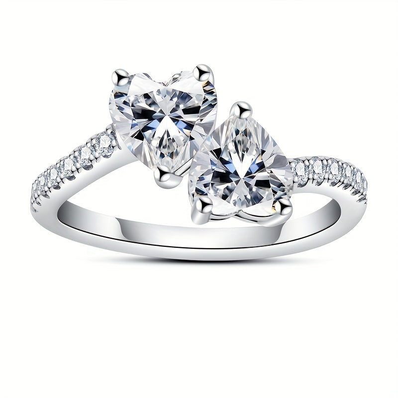 Women's Silver Heart-Shaped Moissanite Ring 6.5mm 2CT Side Stones Jewelry