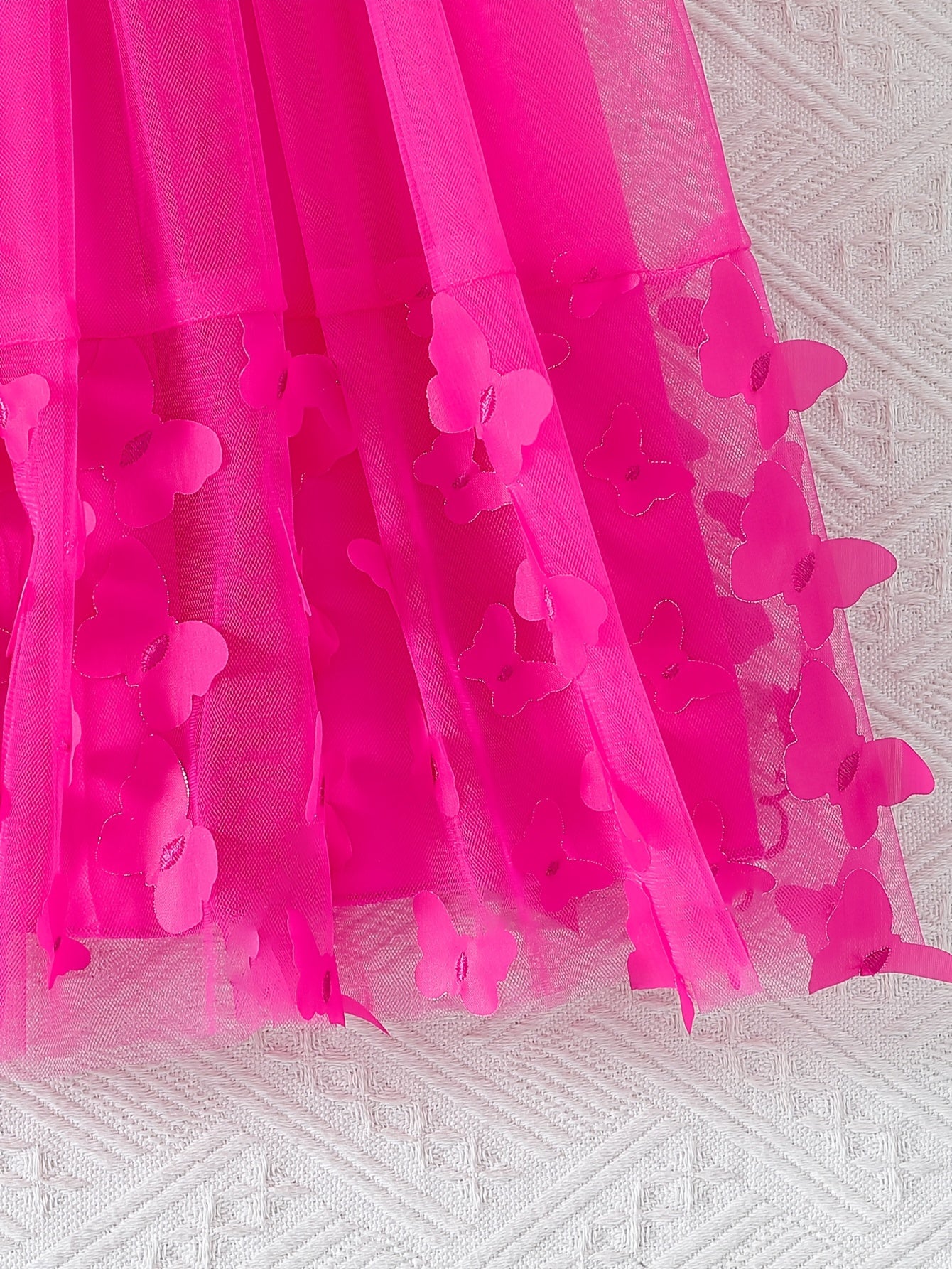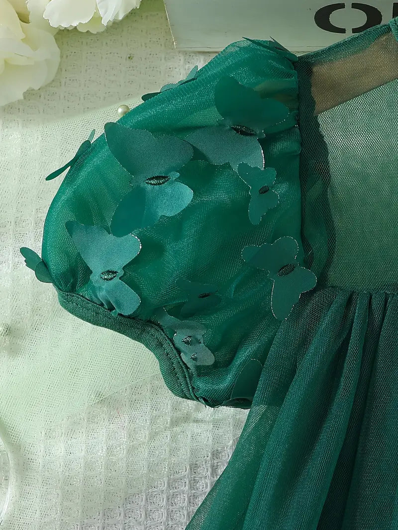Girls' Spring Summer Princess Dress with 3D Butterfly Detail Short Puff Sleeve Flared Hollow Design