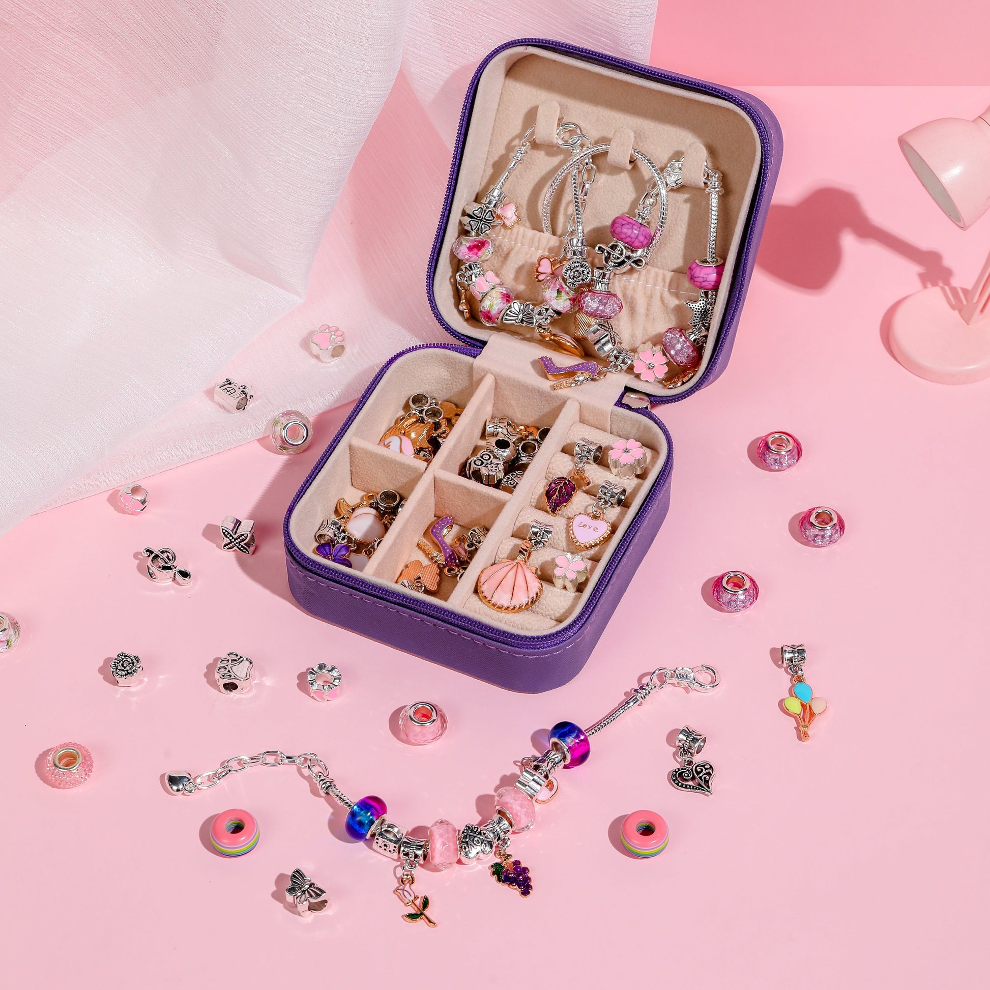 Girls' Jewelry Making Kit with Beads and Pink Leather Gift Box