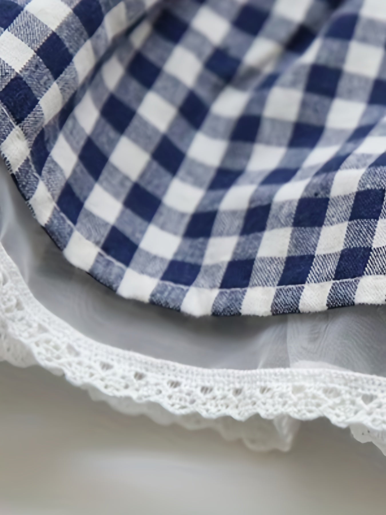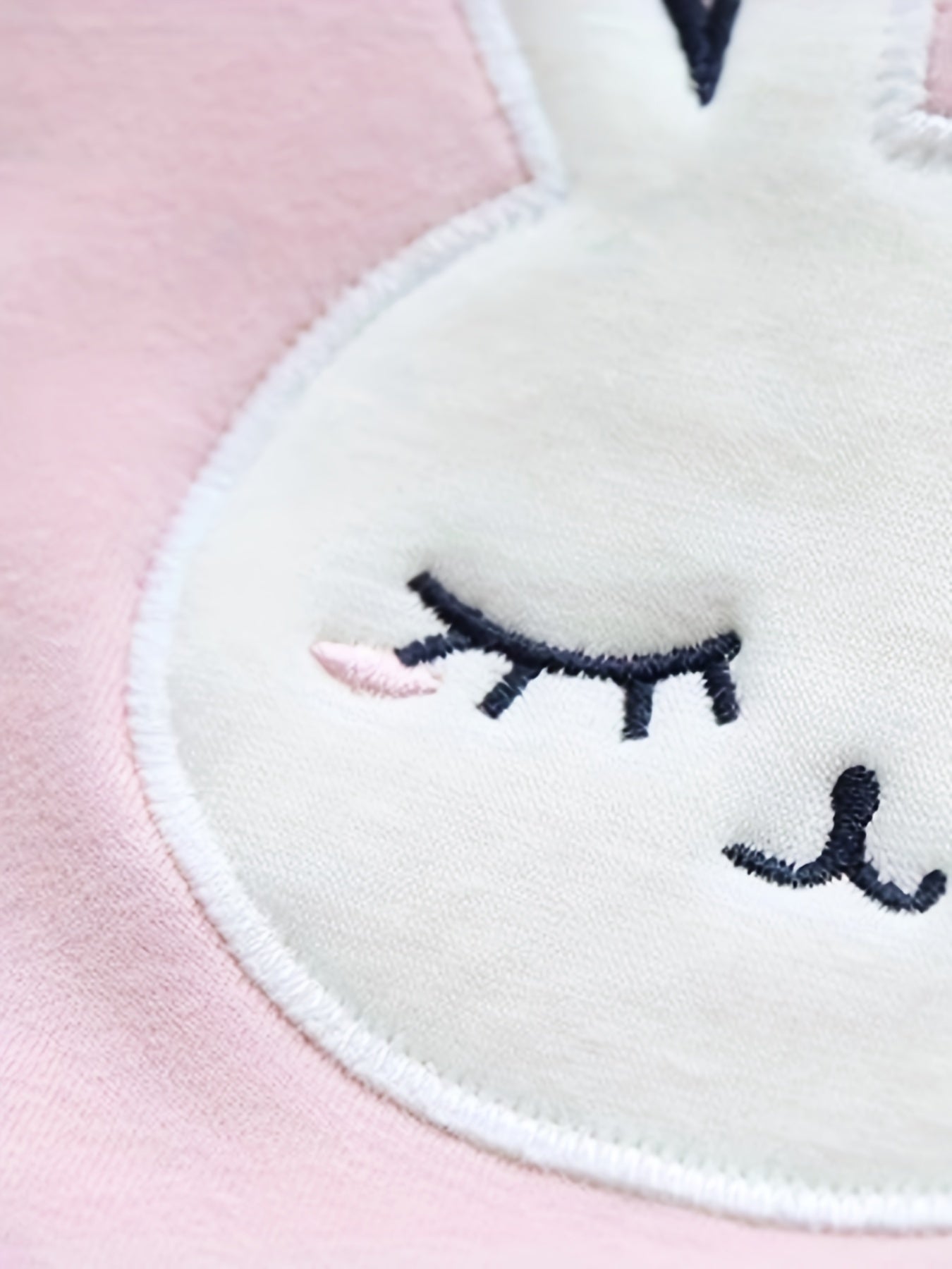 Girls' Long Sleeve Cotton Dress with Rabbit Embroidery Pink Princess Skirt Checkered Pattern Lace Trim for Girls