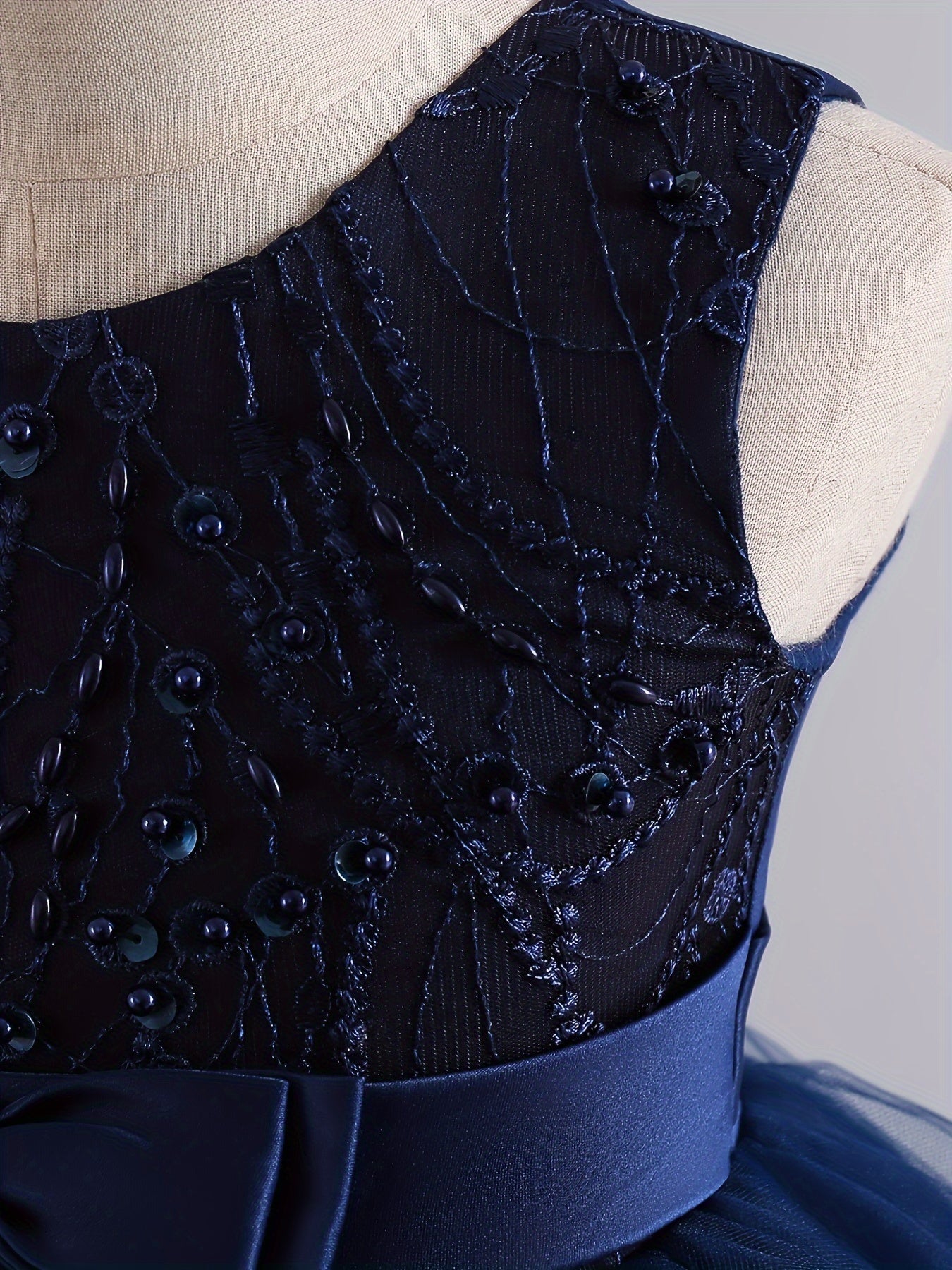 Girls' Sleeveless Princess Dress with Floral Embroidery Tulle Skirt for Pageants Weddings and Formal Events